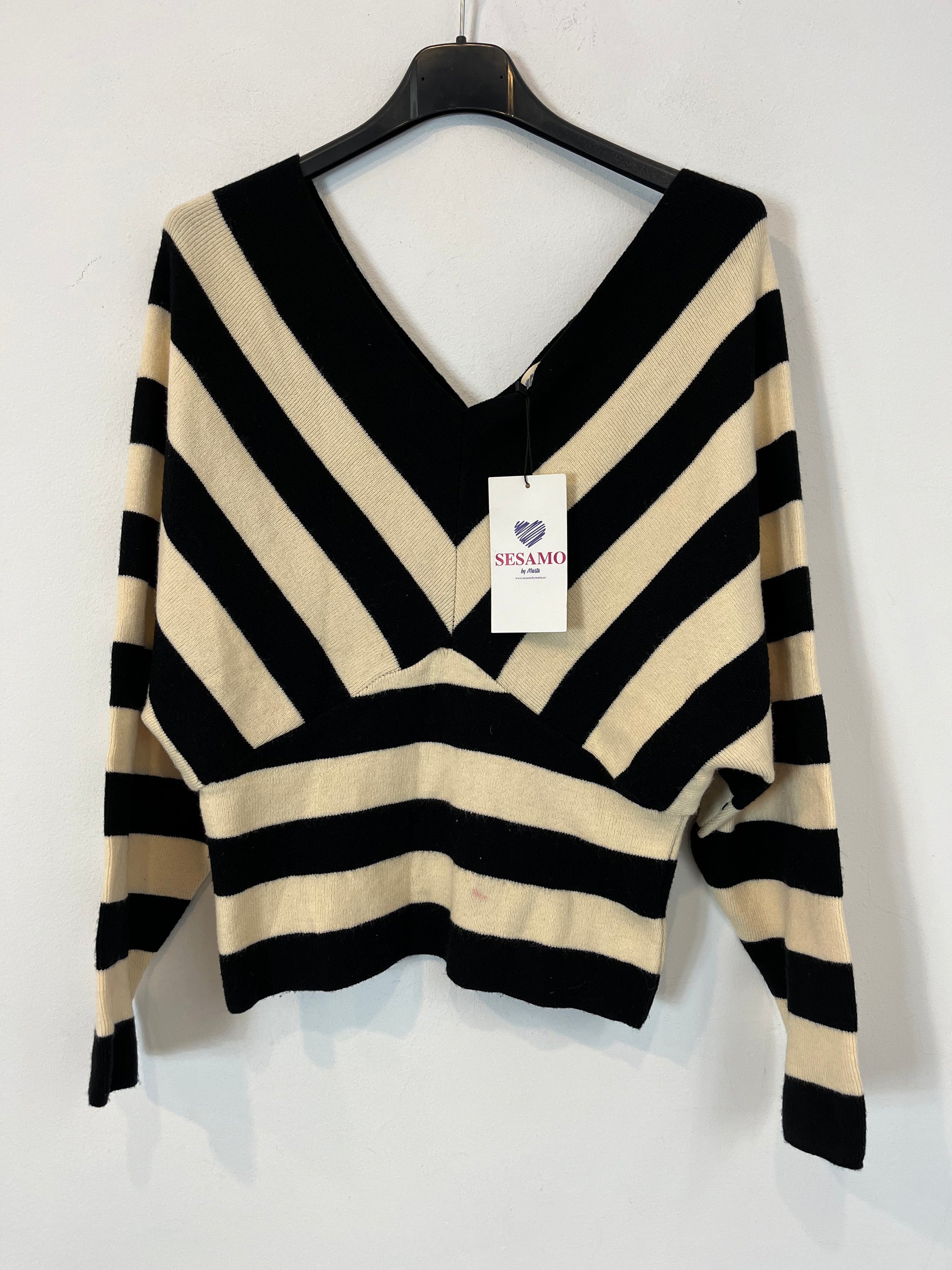 SÉSAMO. Top punto rayas escote pico. T U /S/M)