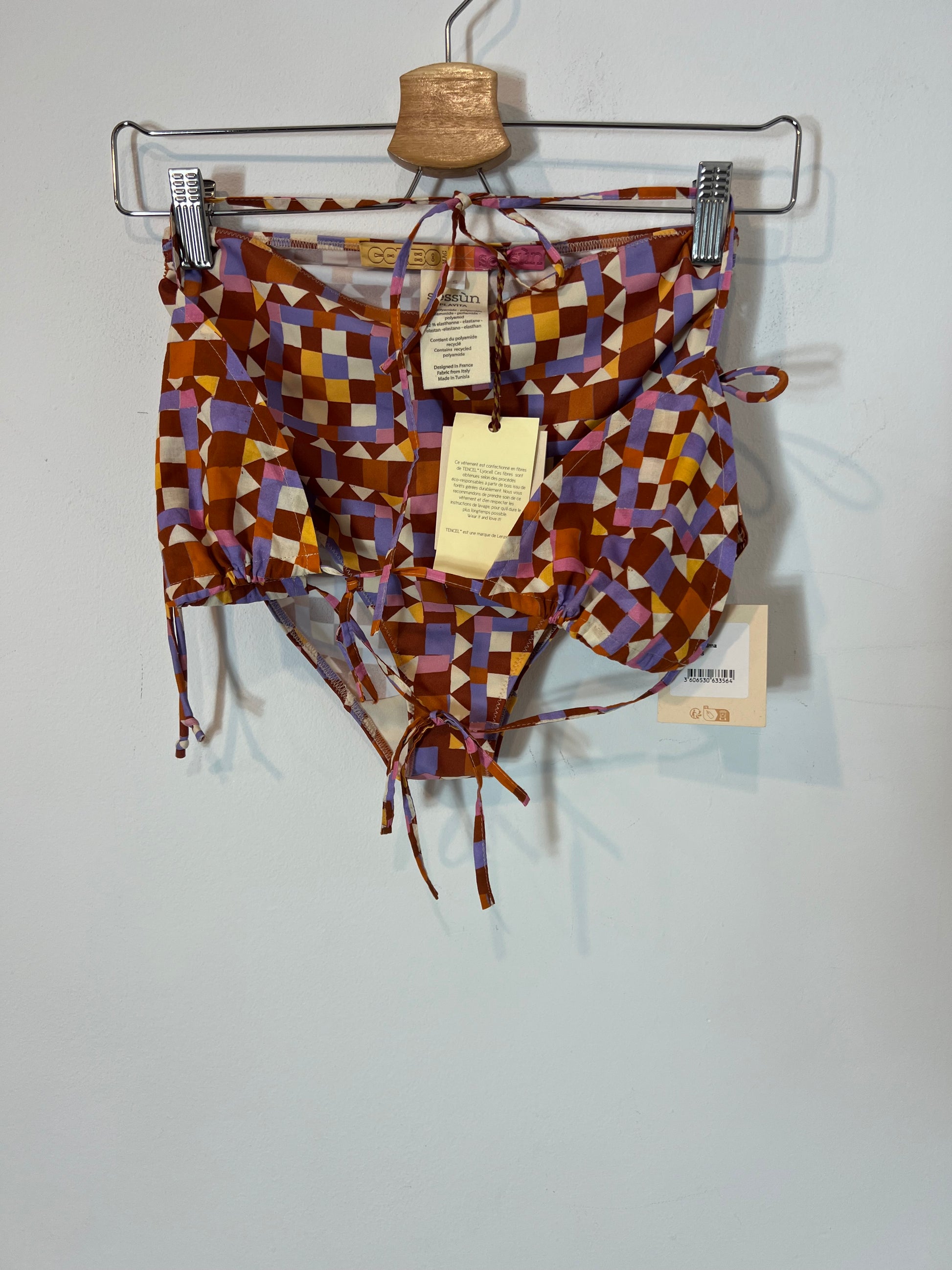 NUEVO CON ETIQUETA. Bikini estampado de rombos parte de arriba tejido no elástico