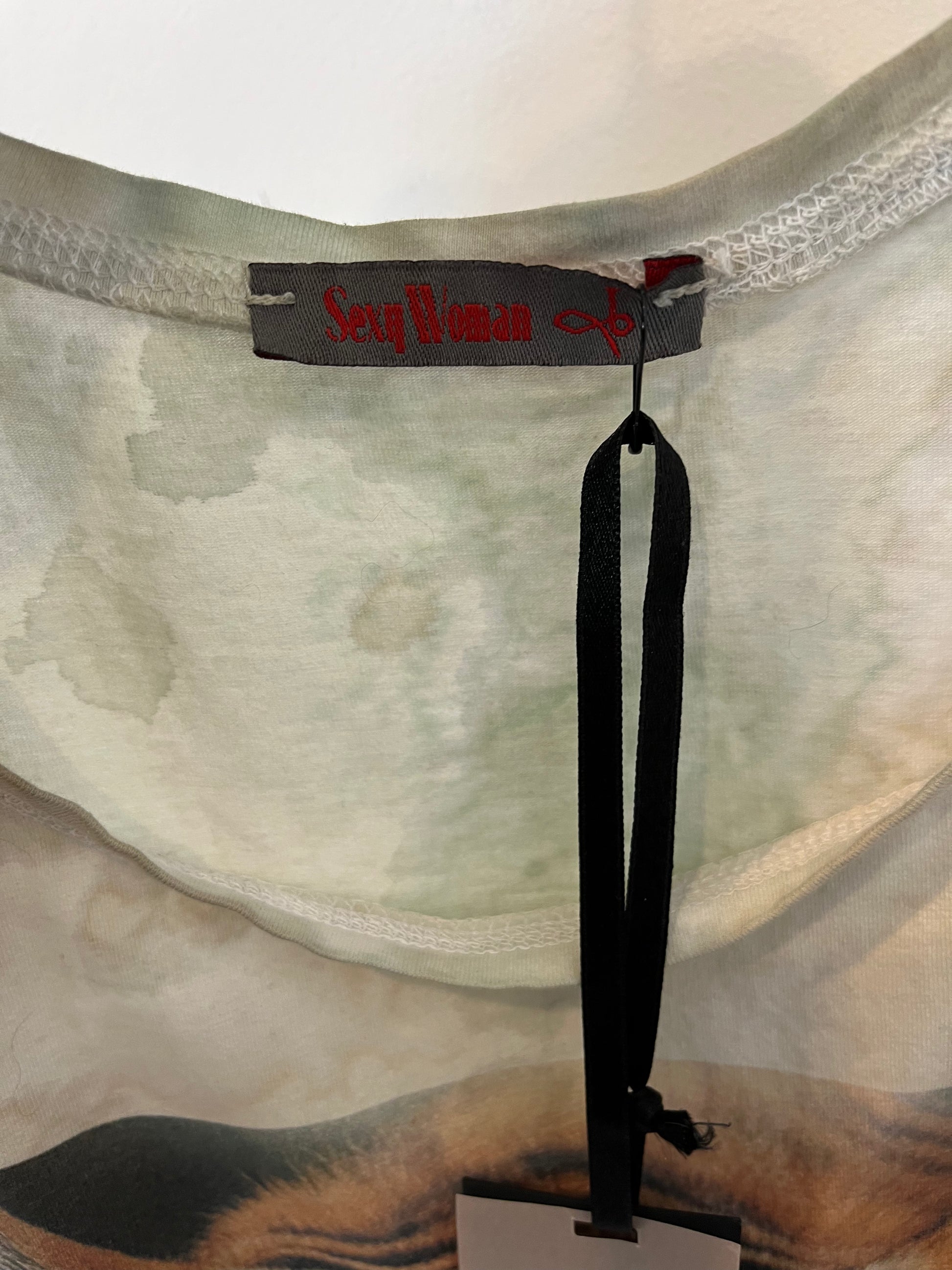 SEXY WOMAN. Camiseta crop dibujo y flecos. T S