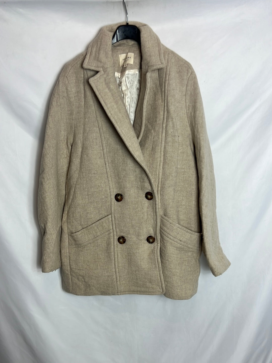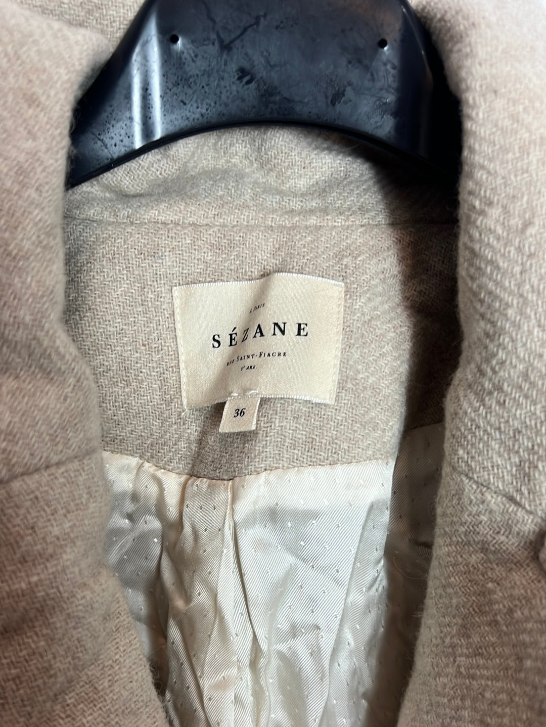 SÉZANE. Abrigo lana beige cruzado. T 36