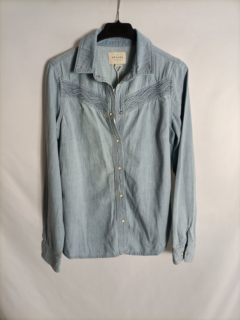 NUEVO CON ETIQUETA. Camisa vaquera denim con detalles. botones de clip