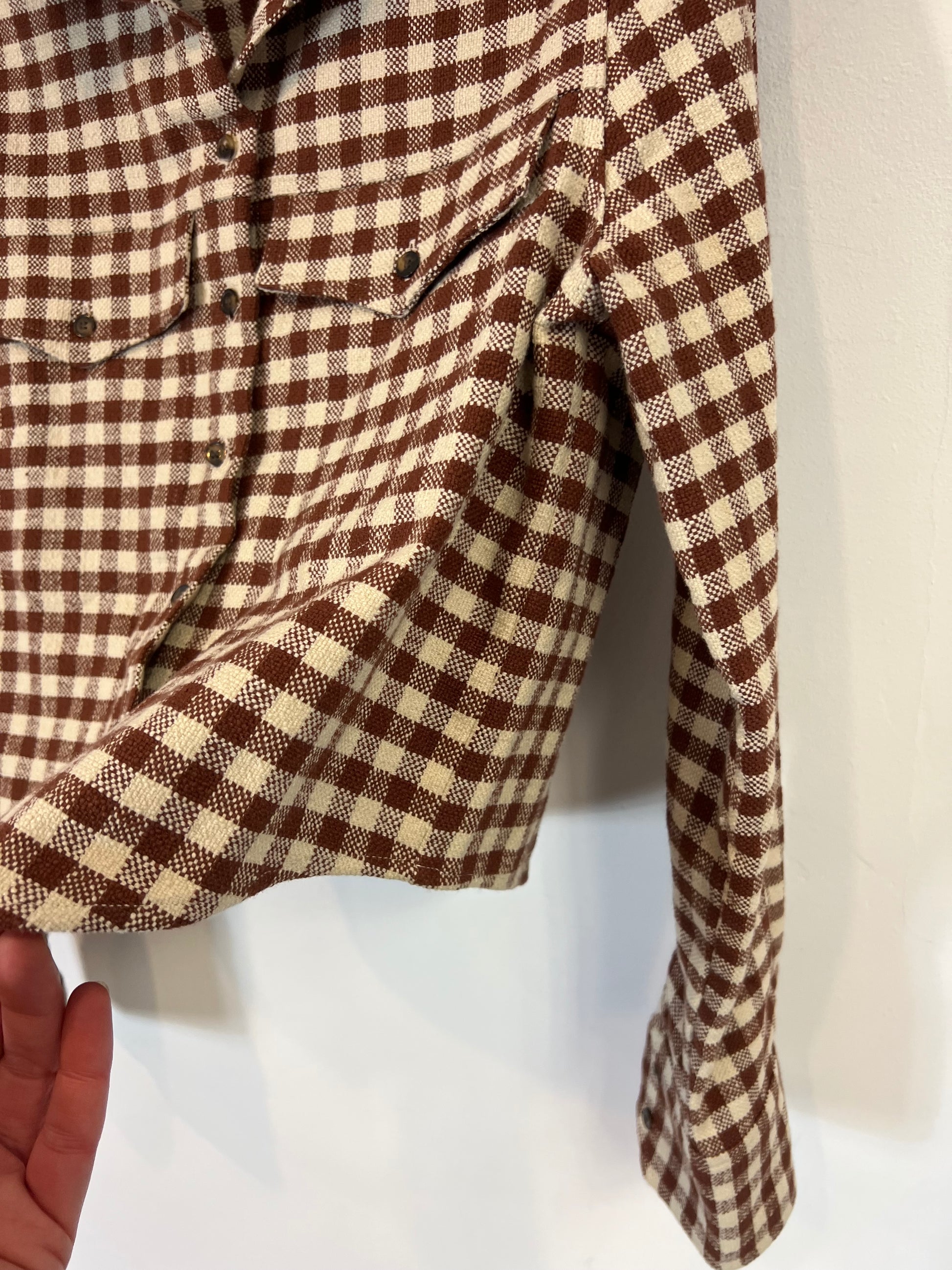 Camisa textura vichy marrón. Actualmente en la web de sisa a sisa 44, largo 45 cm