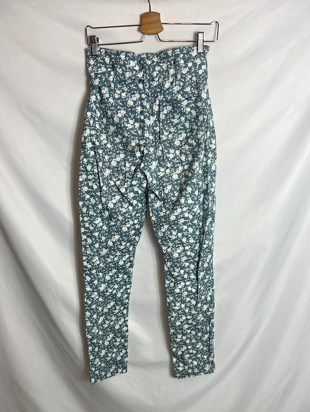 Denim estampando flores abotonado. cintura 34cm, largo 103cm. Tara: tiene alguna manchita (foto)