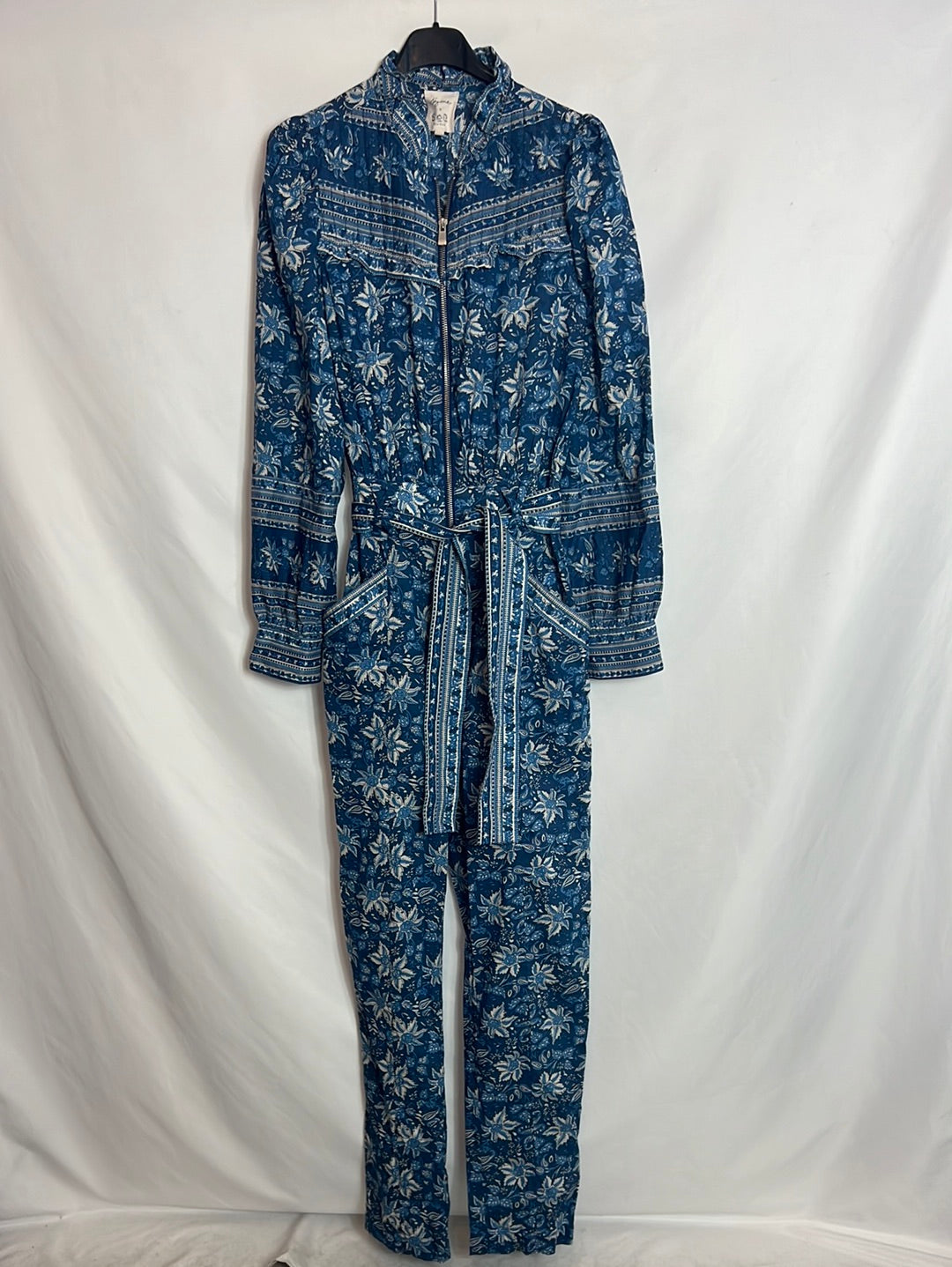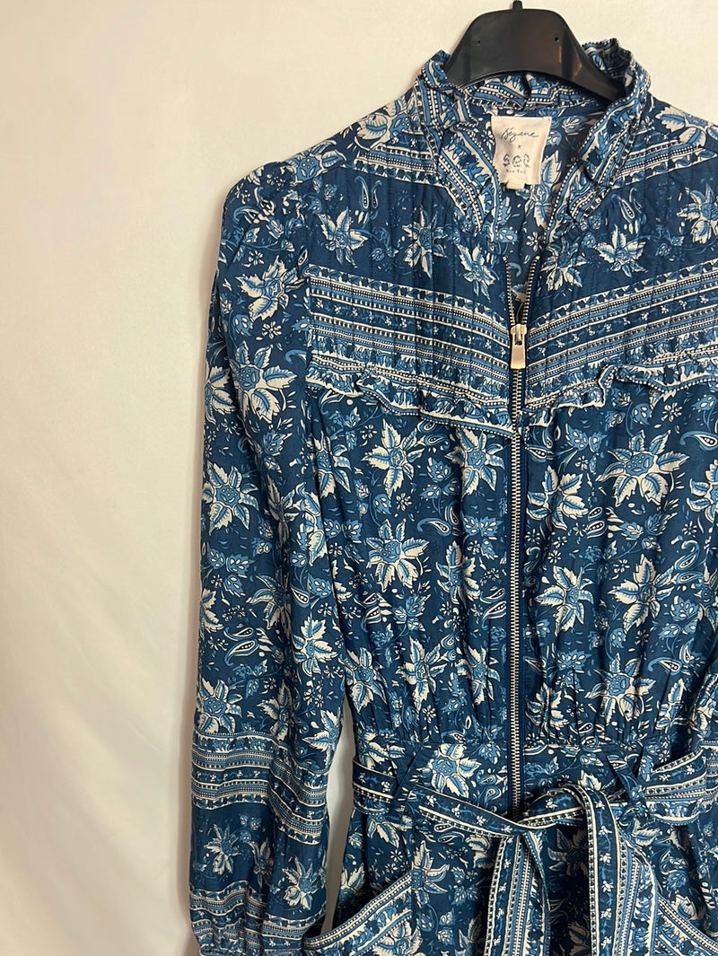 Mono largo algodón estampado. Cremallera frontal y cinturón opcional