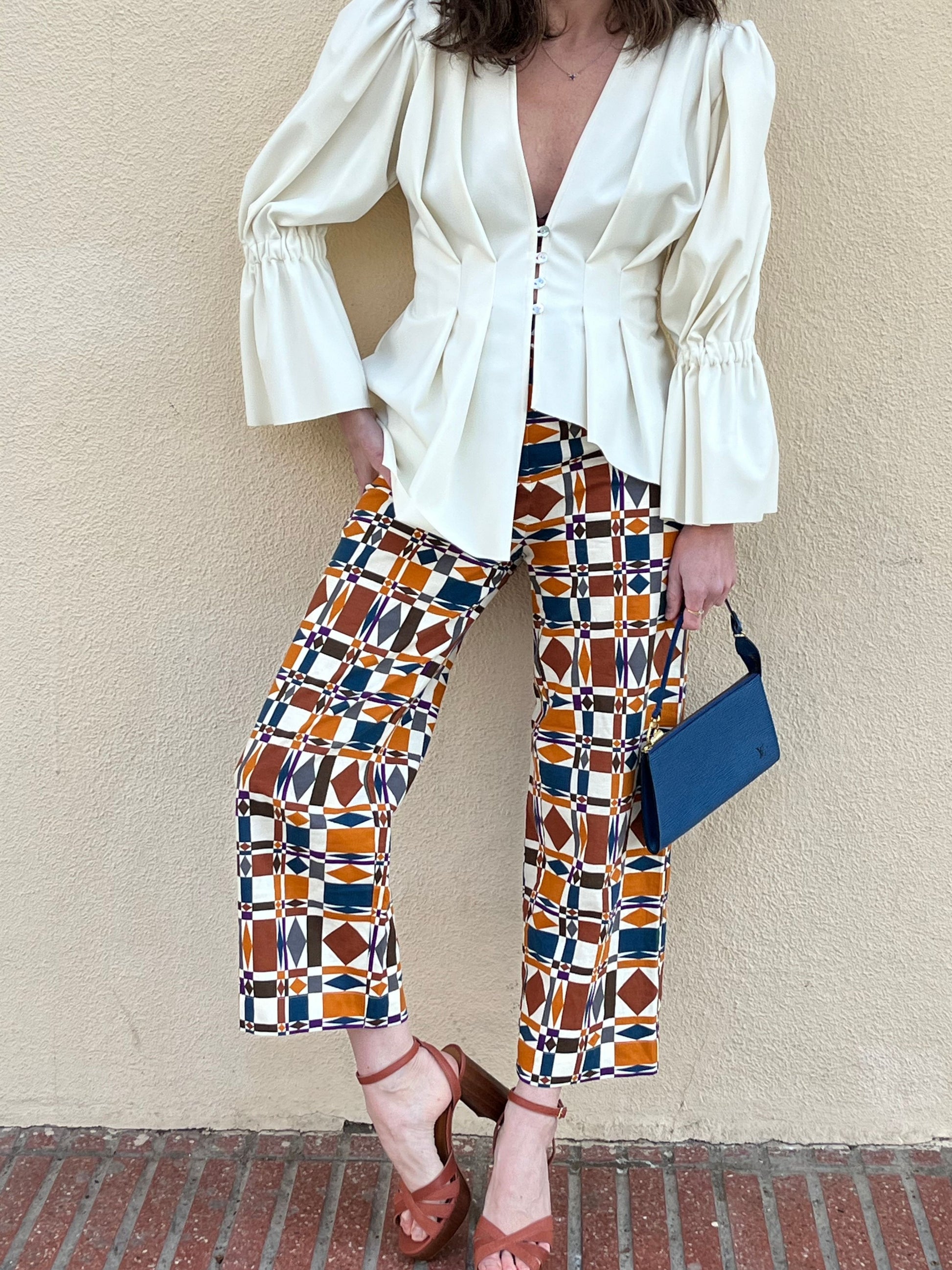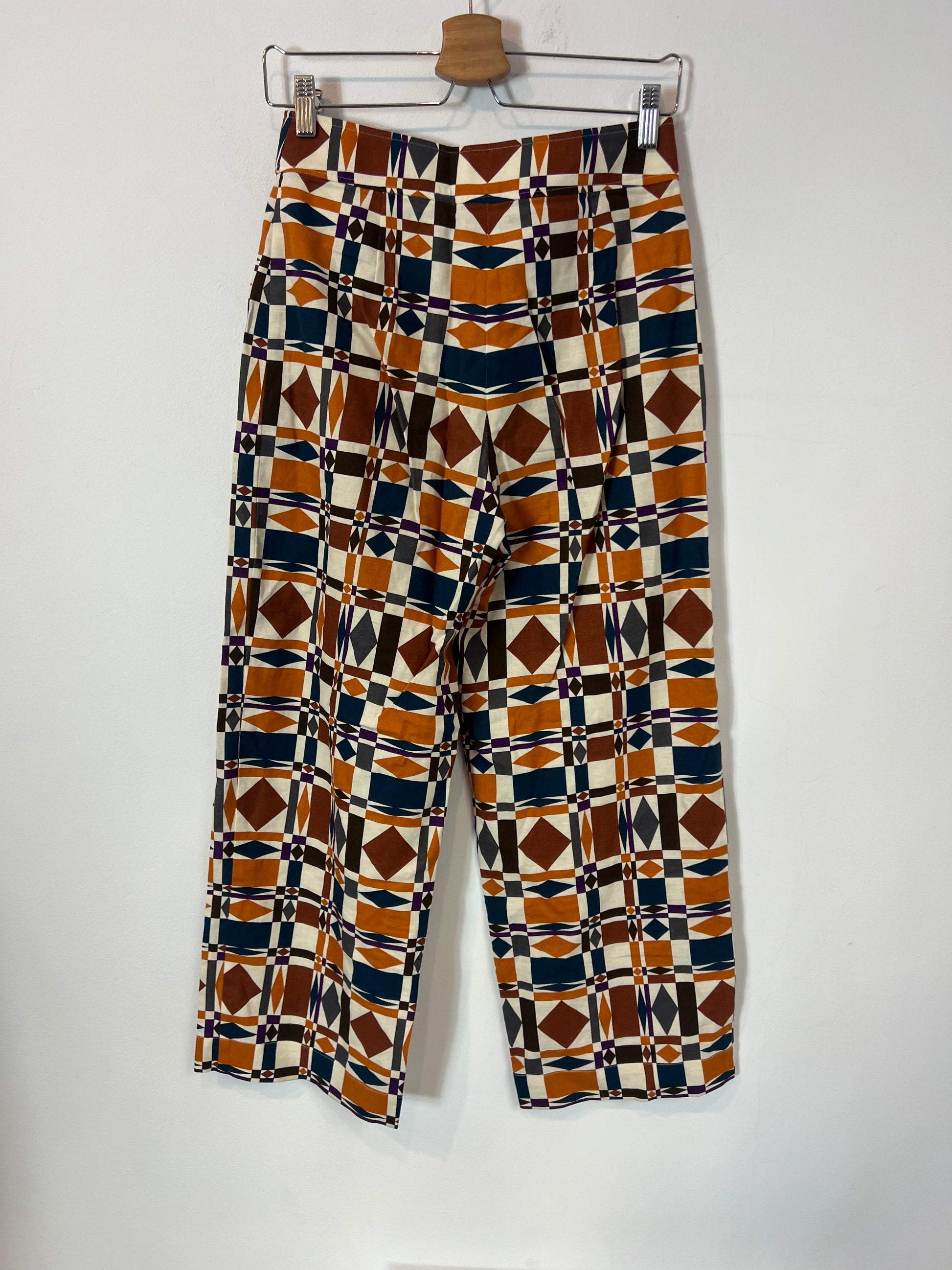 Pantalón estampado con formas geométricas estilo culotte. Cintura cm largo cm