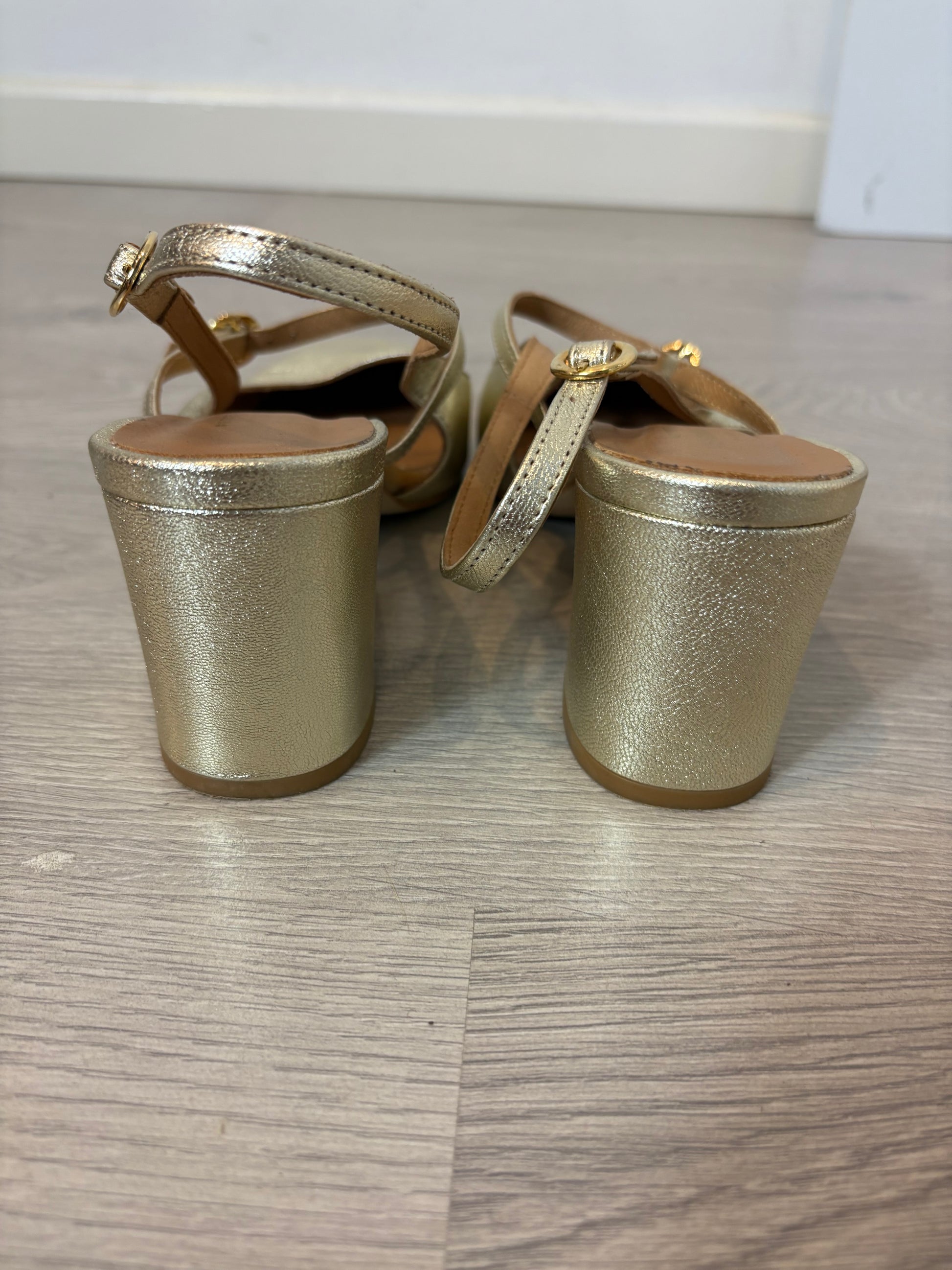PETITE MENDIGOTE. Tacones dorados hebilla