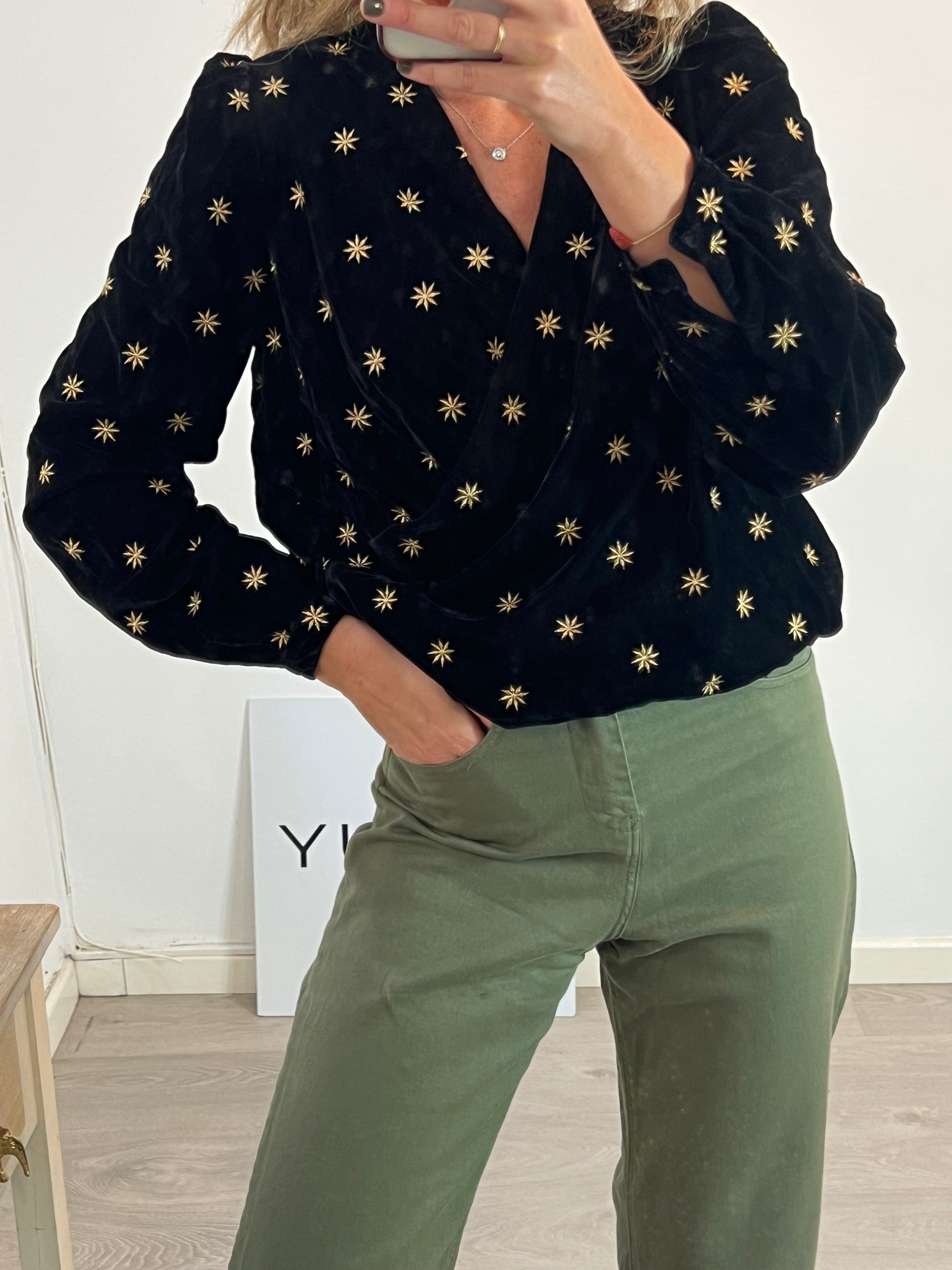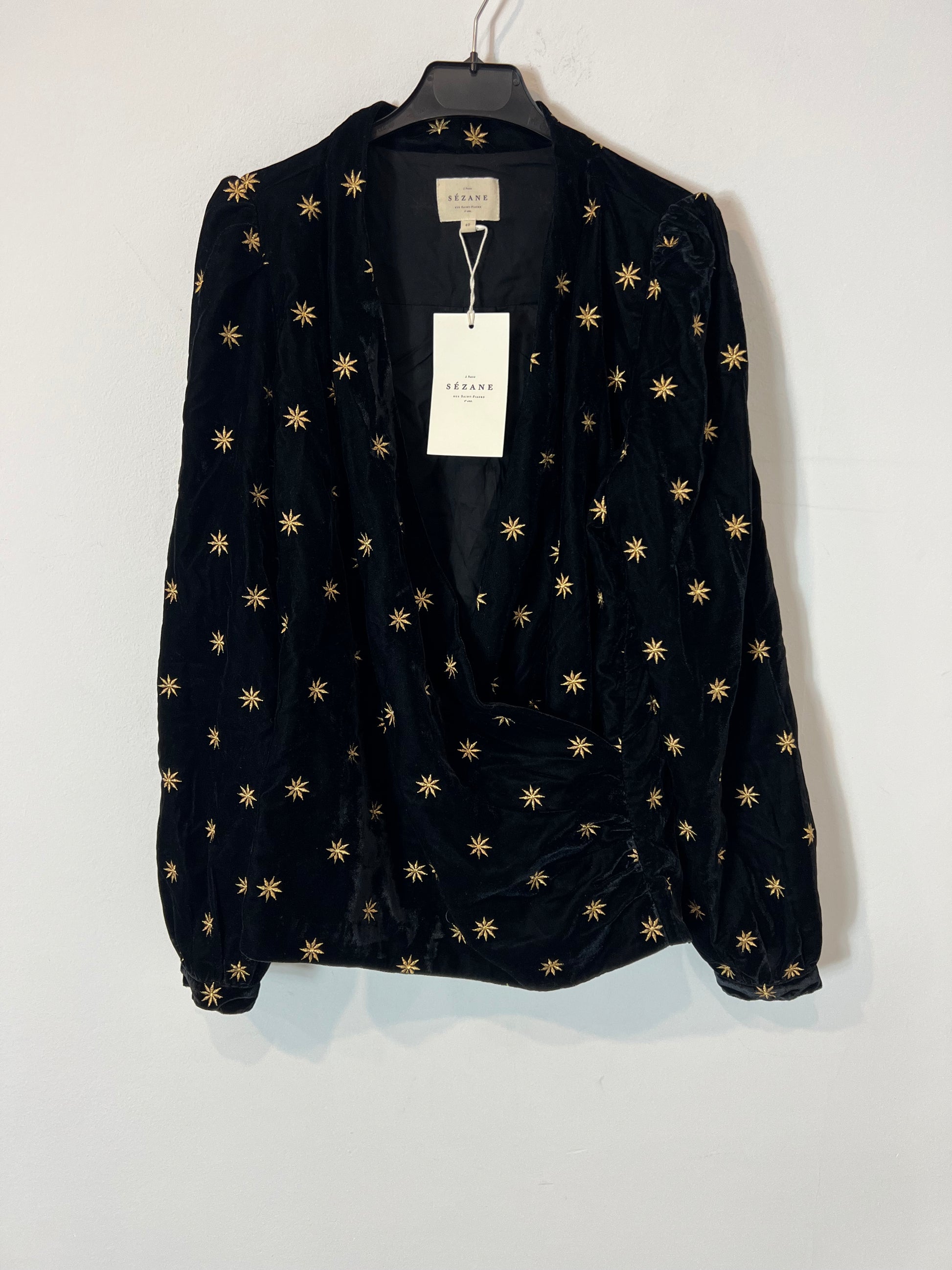 SÉZANE. Top negro terciopelo estrellas. T 40