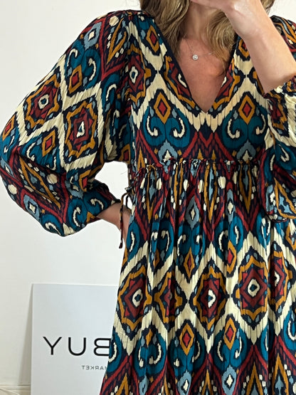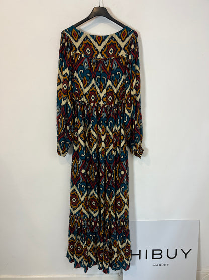 Vestido largo estampado. Espalda 42 cm ,largo 137 cm. Cintura alta ajustable