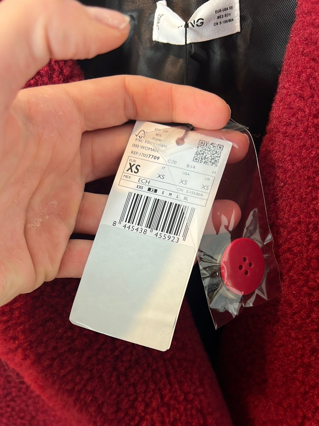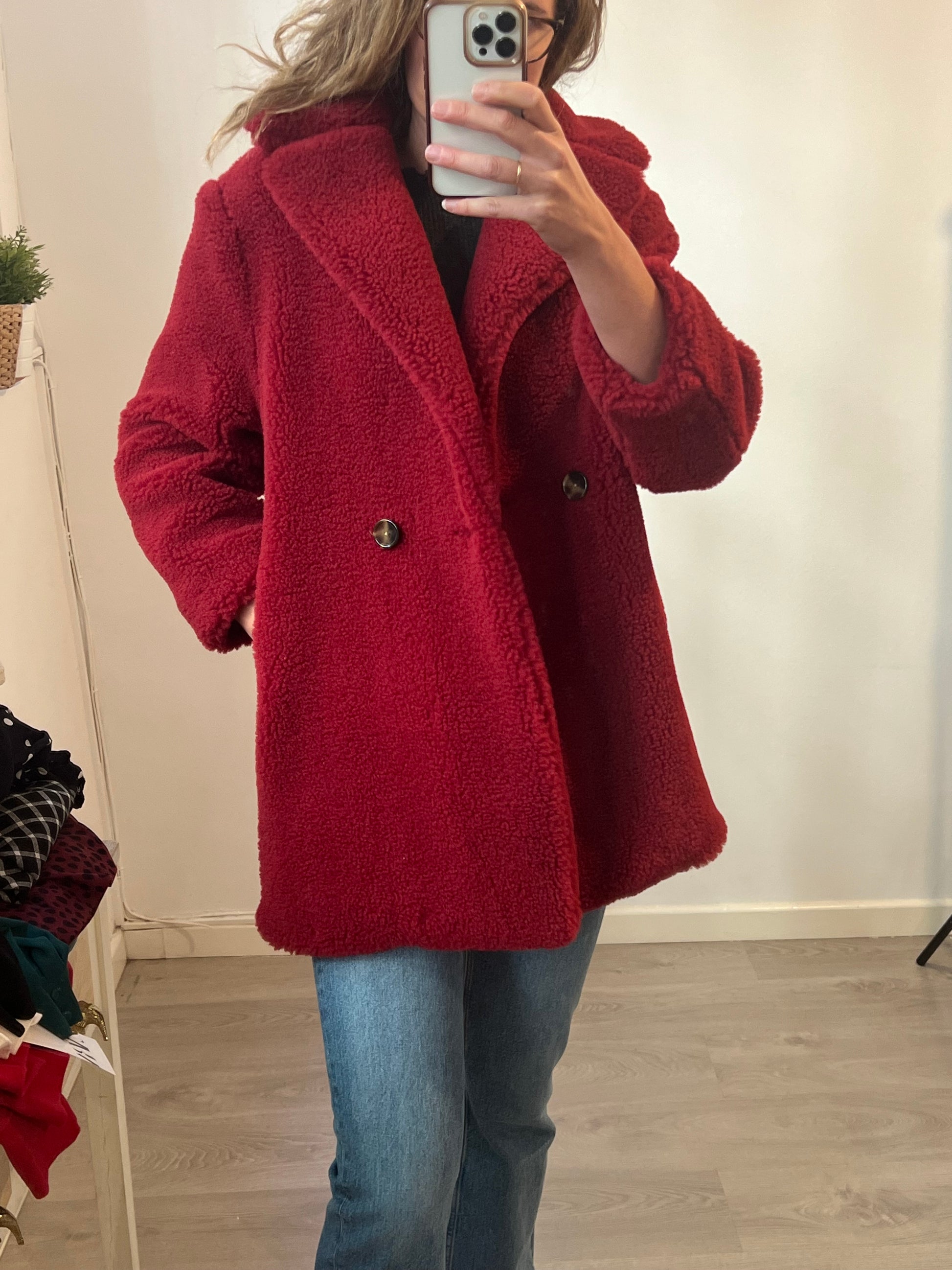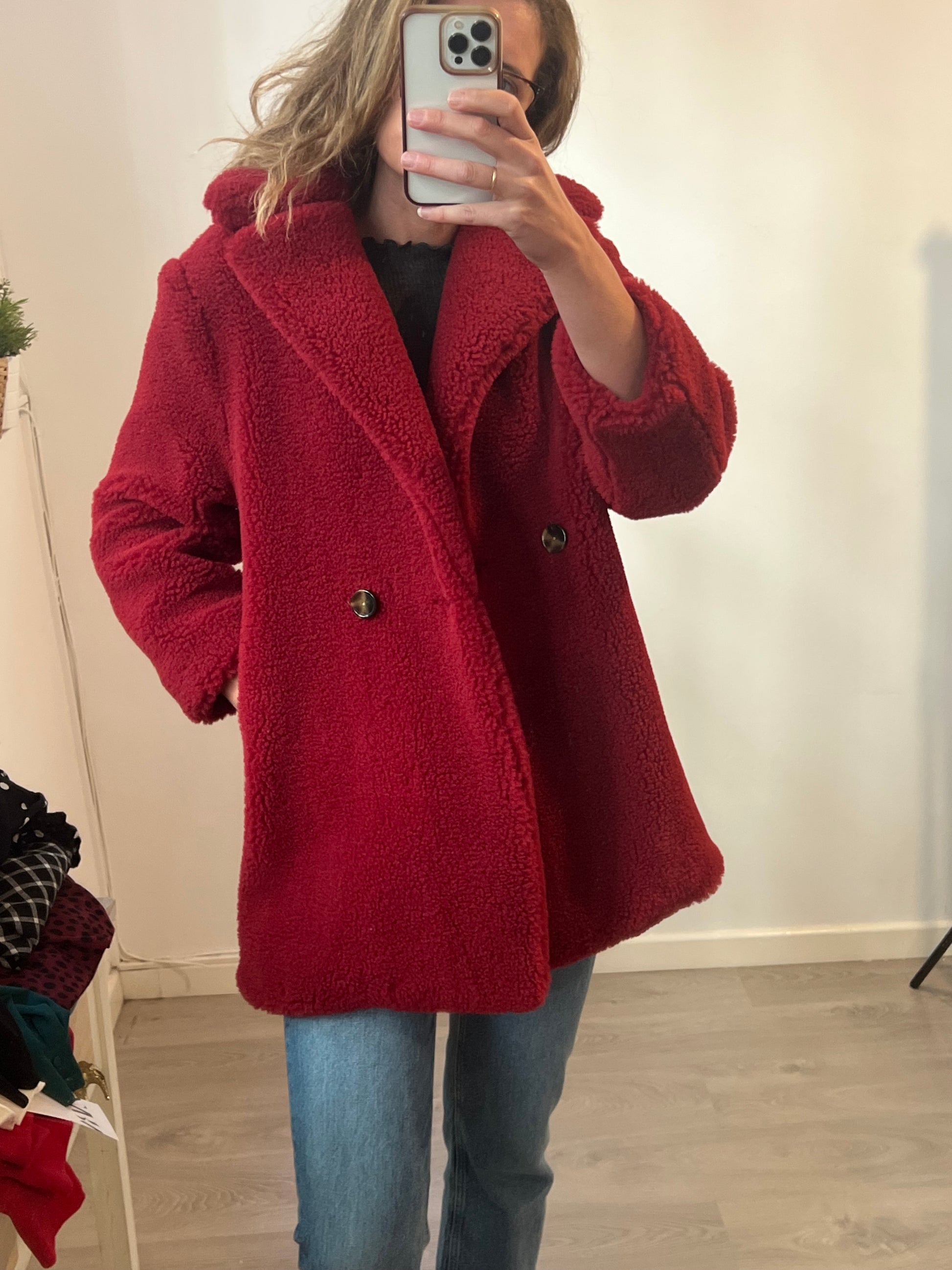 NUEVO CON ETIQUETA. Abrigo borrego color vino. Hombros 45cm, de sisa a sisa 48cm, largo 82cm