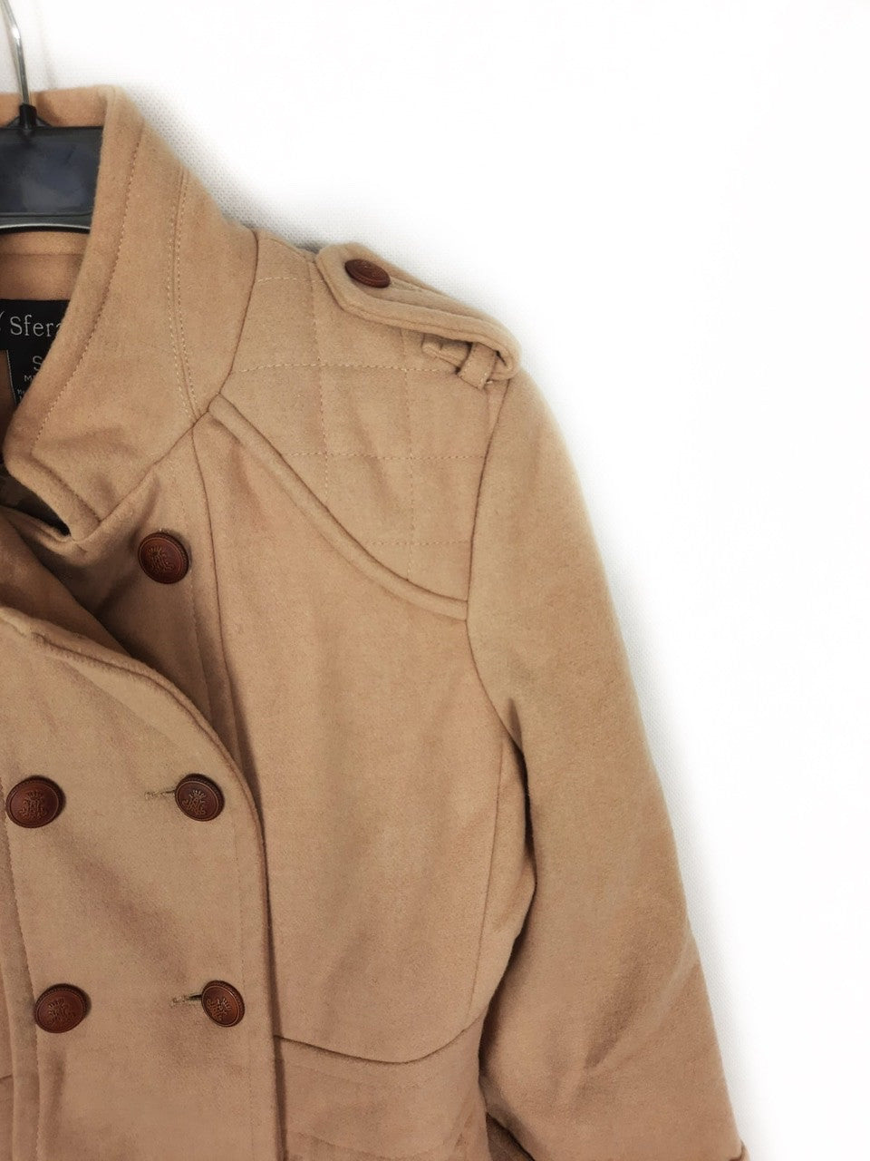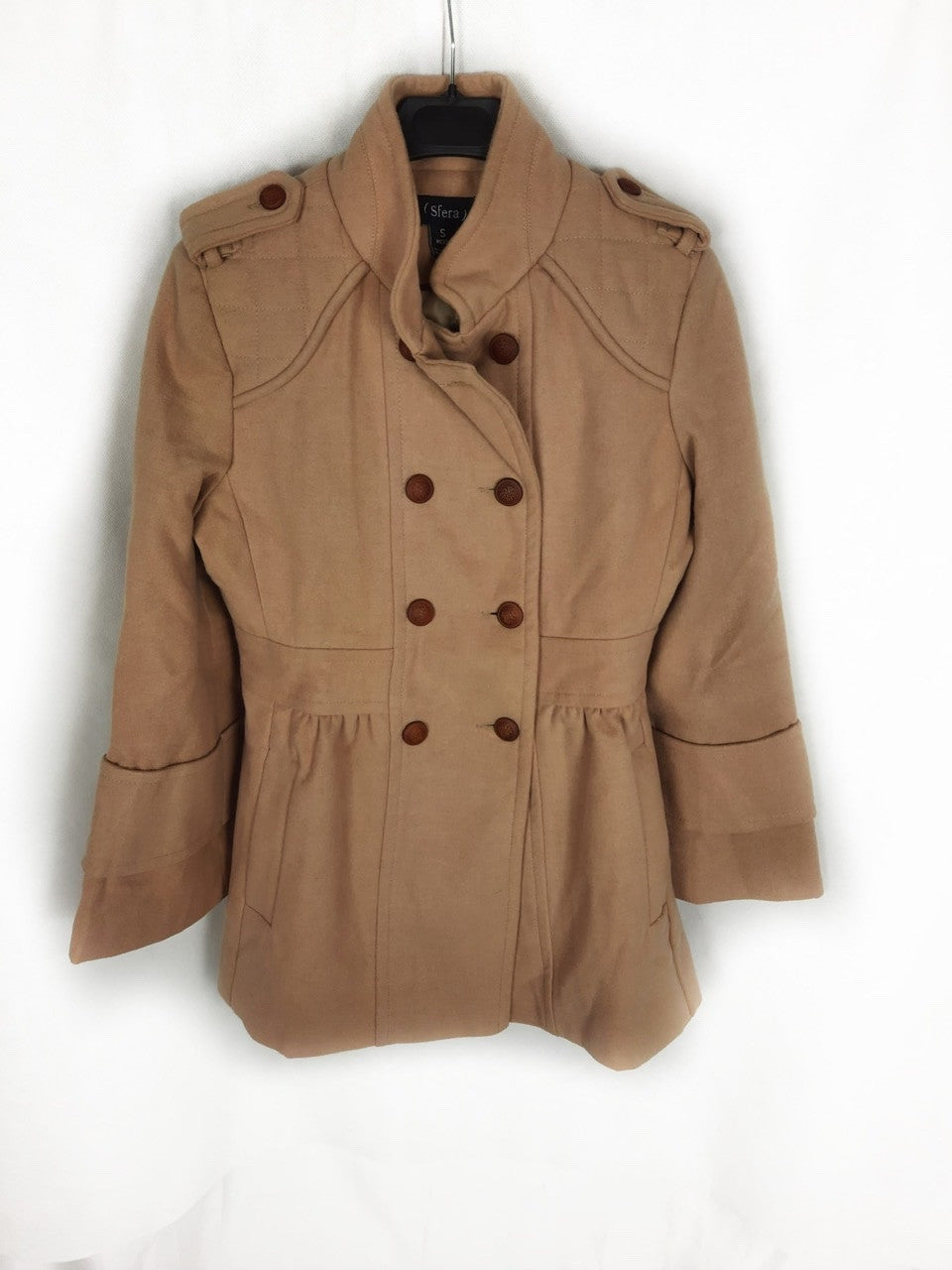 Sfera. Abrigo de paño came, cruzado y con las mangas anchas. De sisa a sisa 46 cm largo 71 cm