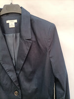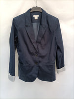 Blazer azul marino con interior de rayas. Hombros acolchados, Dos botones para abrochar.