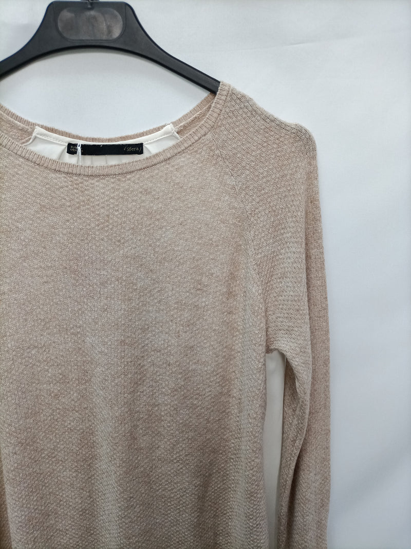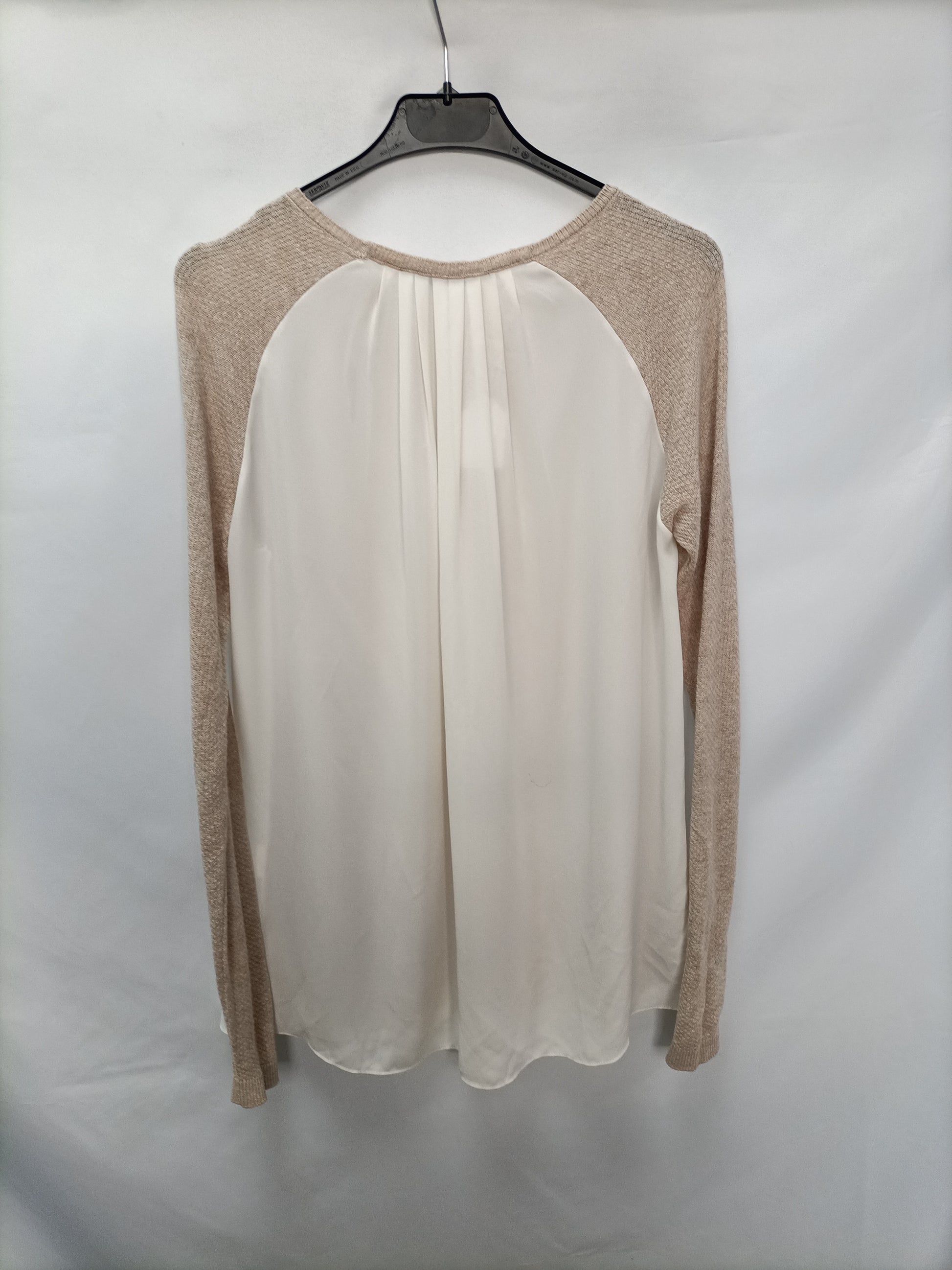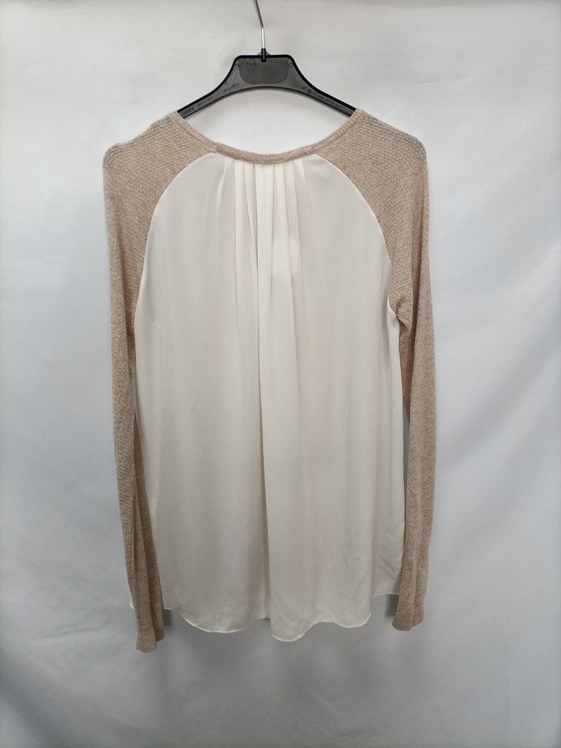 Parte de delante estilo jersey beige y parte de atrás blusa.