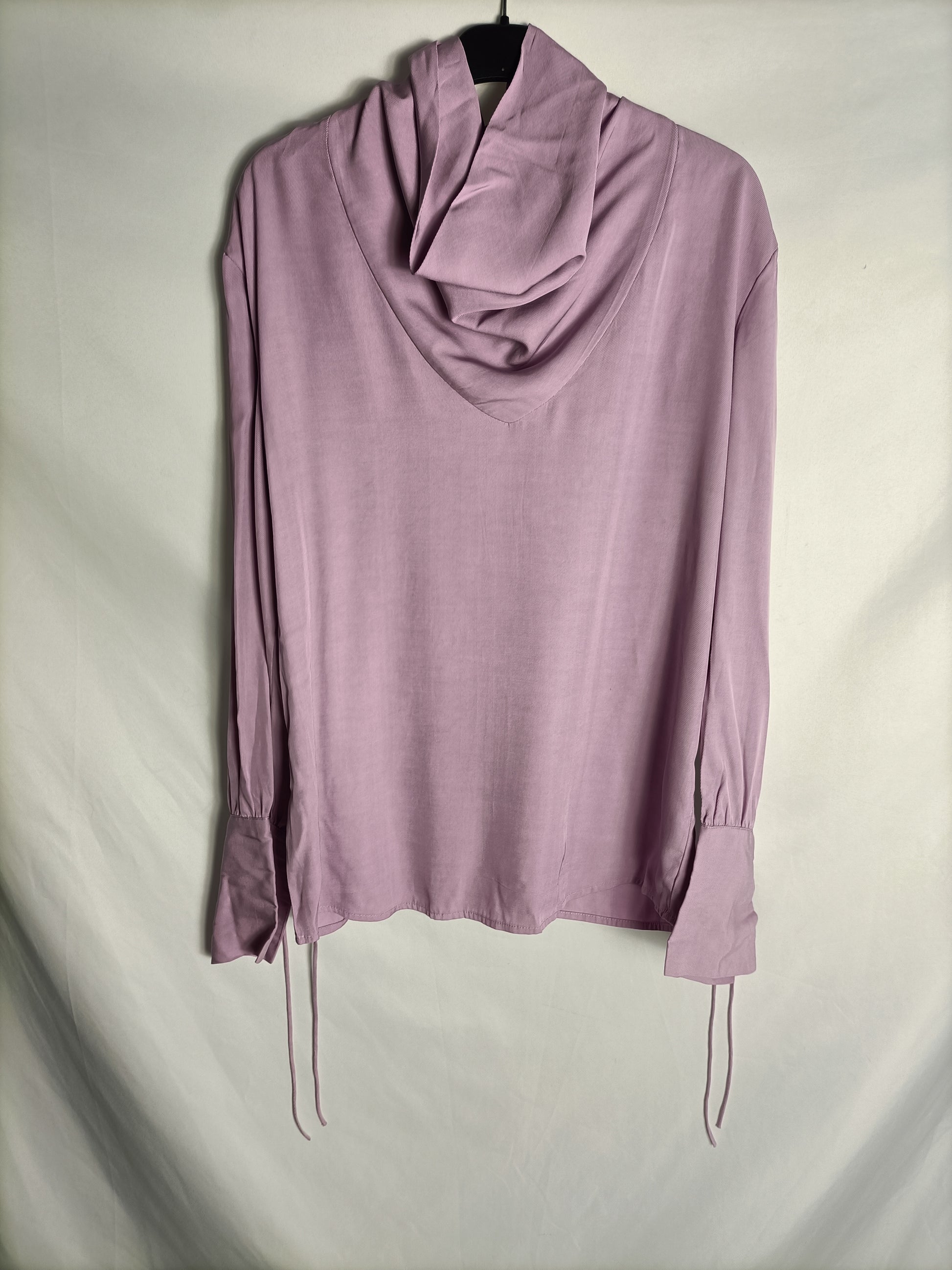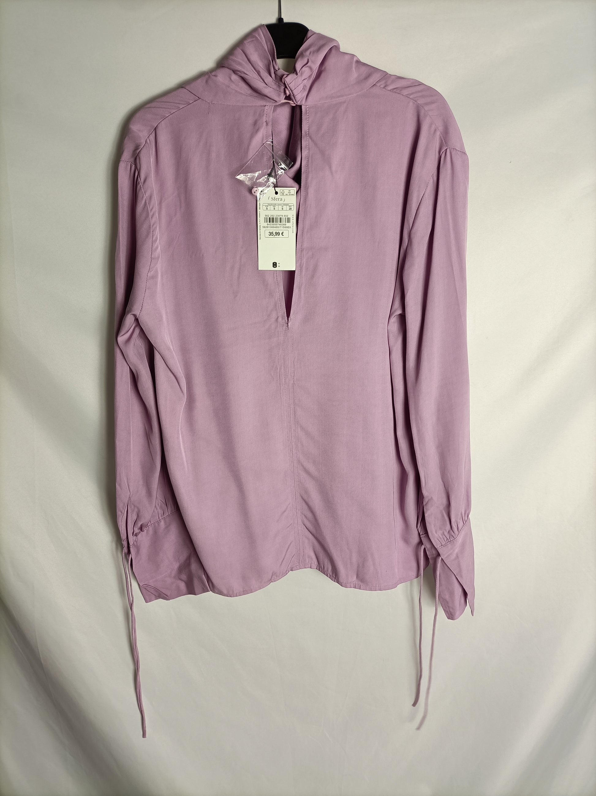 NUEVO CON ETIQUETA. Blusa lila cuello fluido y espalda con apertura