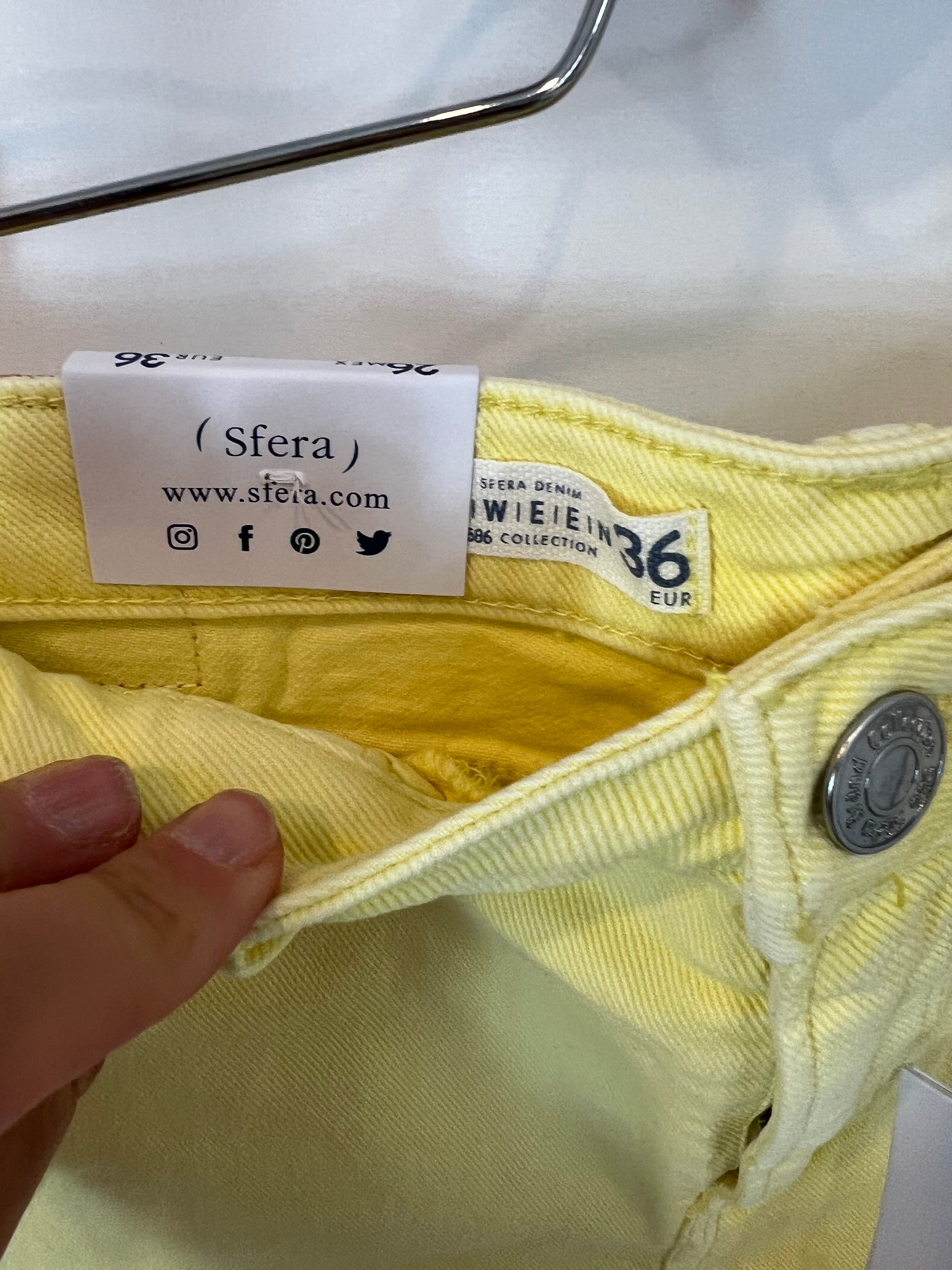 Pantalón corto amarillo efecto desgastado. elástico. Largo 37cm