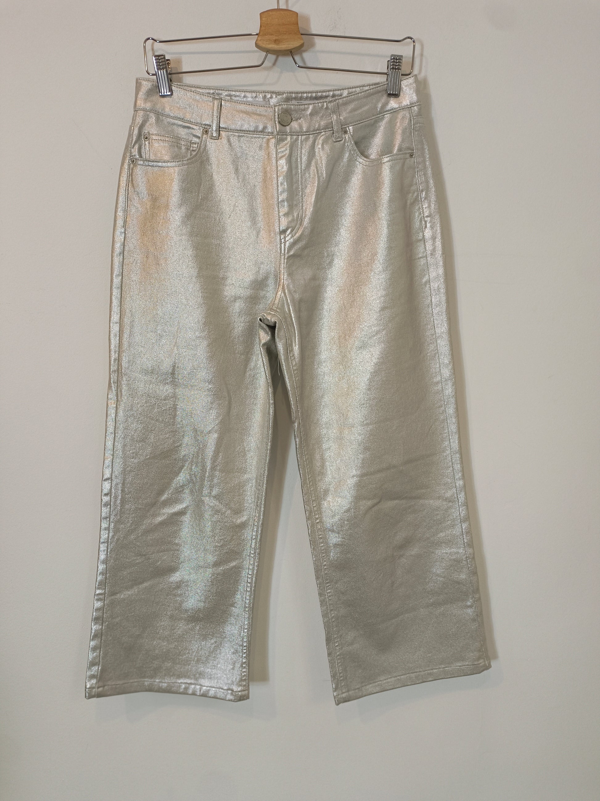 SFERA. Pantalón encerado plateado T.36
