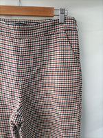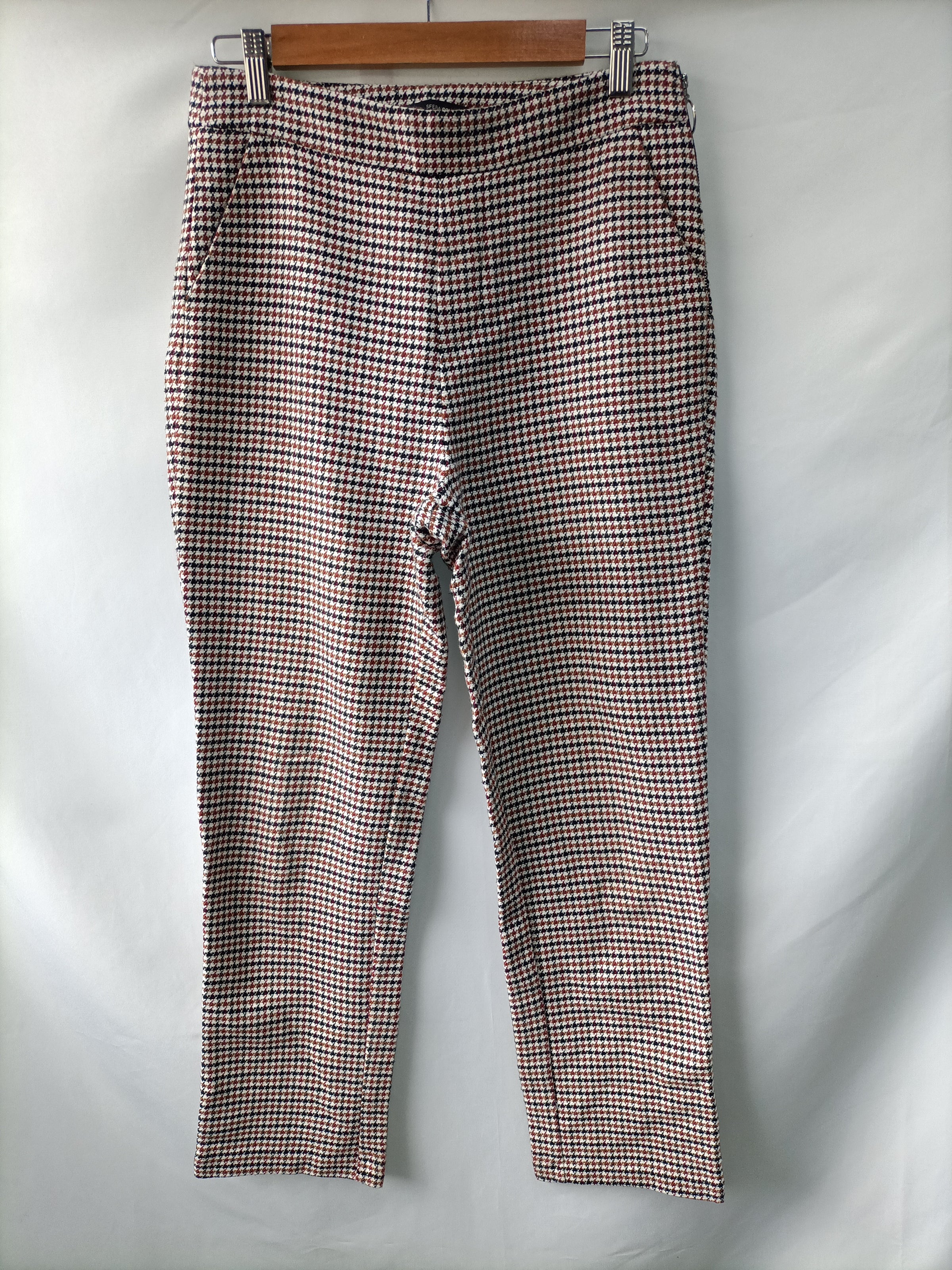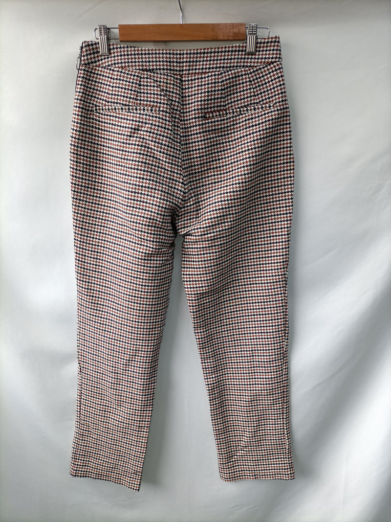 Pantalón de pata de gayo en tonos marrones, negros y burdeos. Se abrocha con cremallera lateral. No es elástico. Cintura 38 cm largo 98 cm