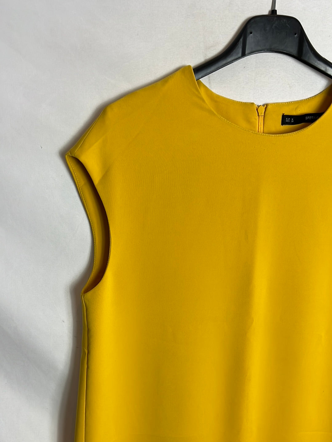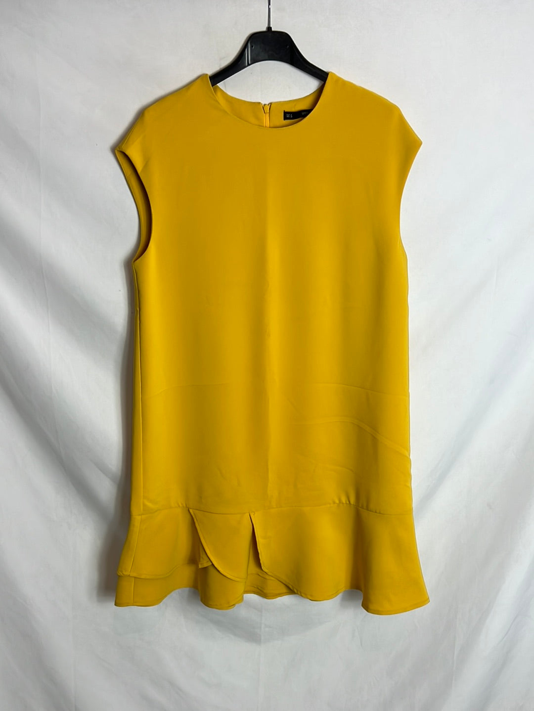 vestido corto amarillo con volante en la parte de abajo. De sisa a sisa 48cm, largo 84cm