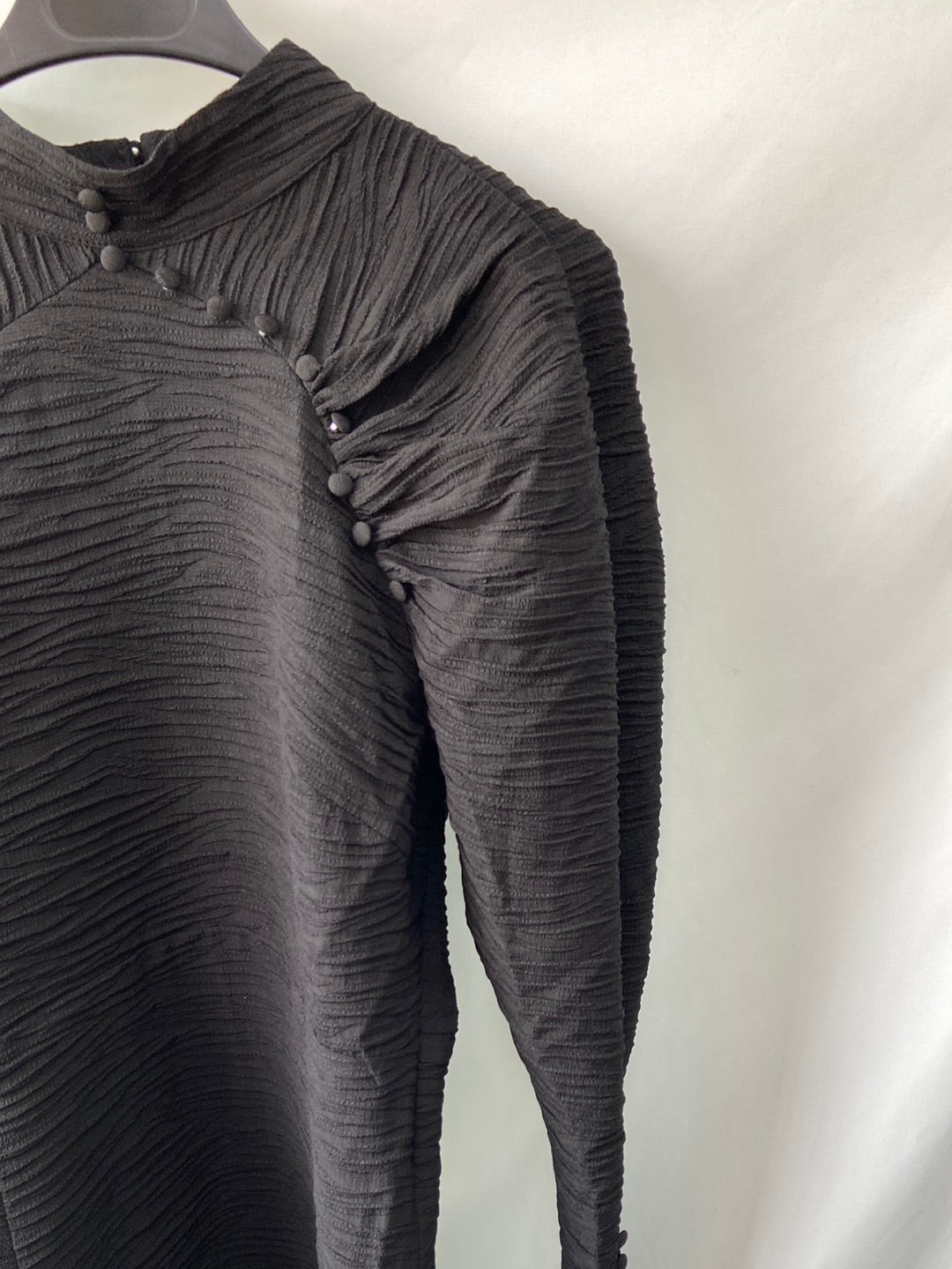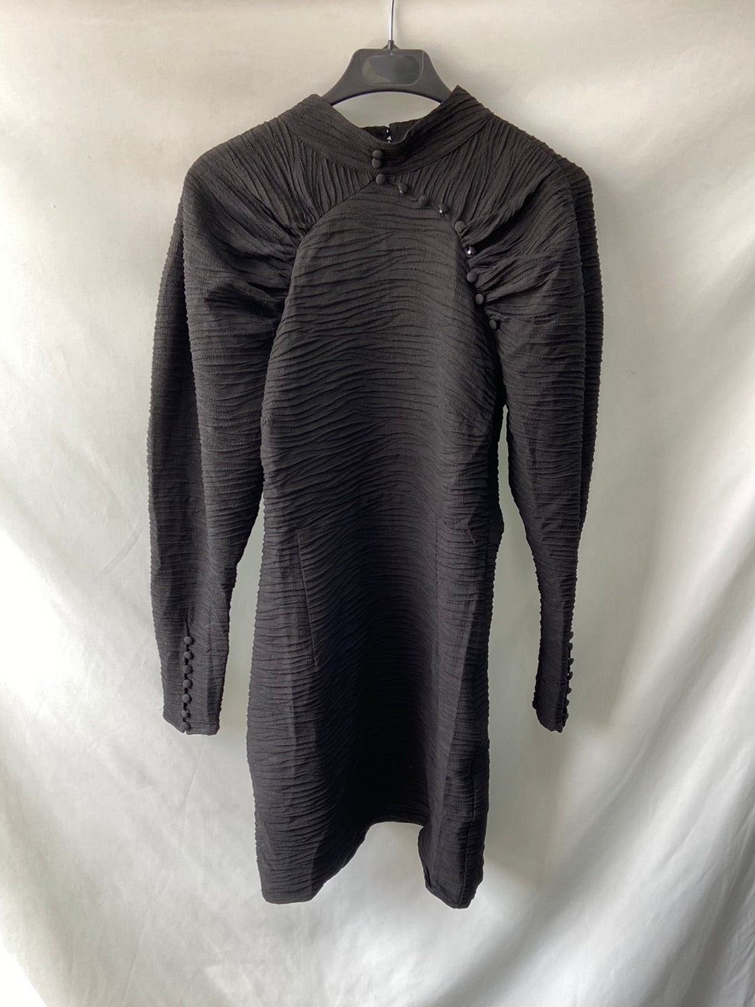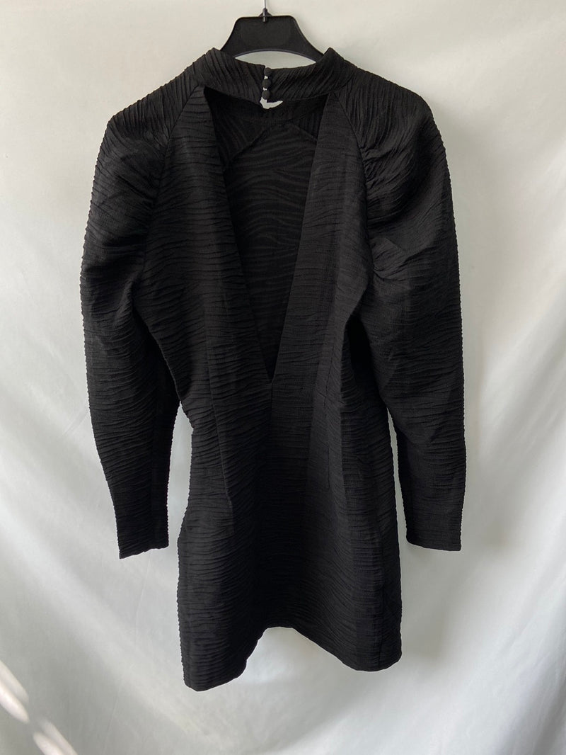 Vestidos corto negro de fiesta con las mangas bombachas y espalda al aire. Semielastico. Largo 80 cm