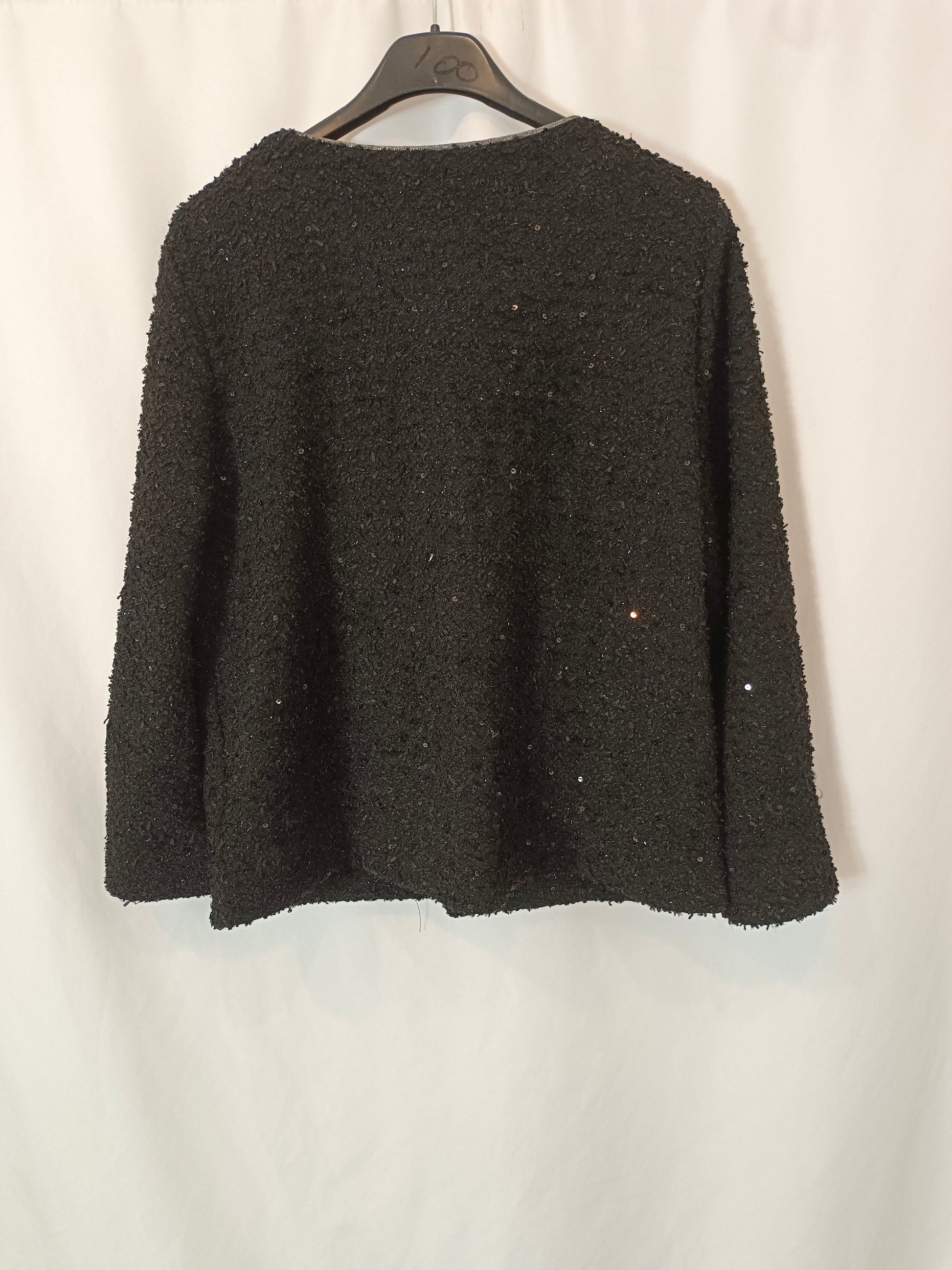 Chaqueta negra de tejido tweed elástico con detalle de lentejuela negras