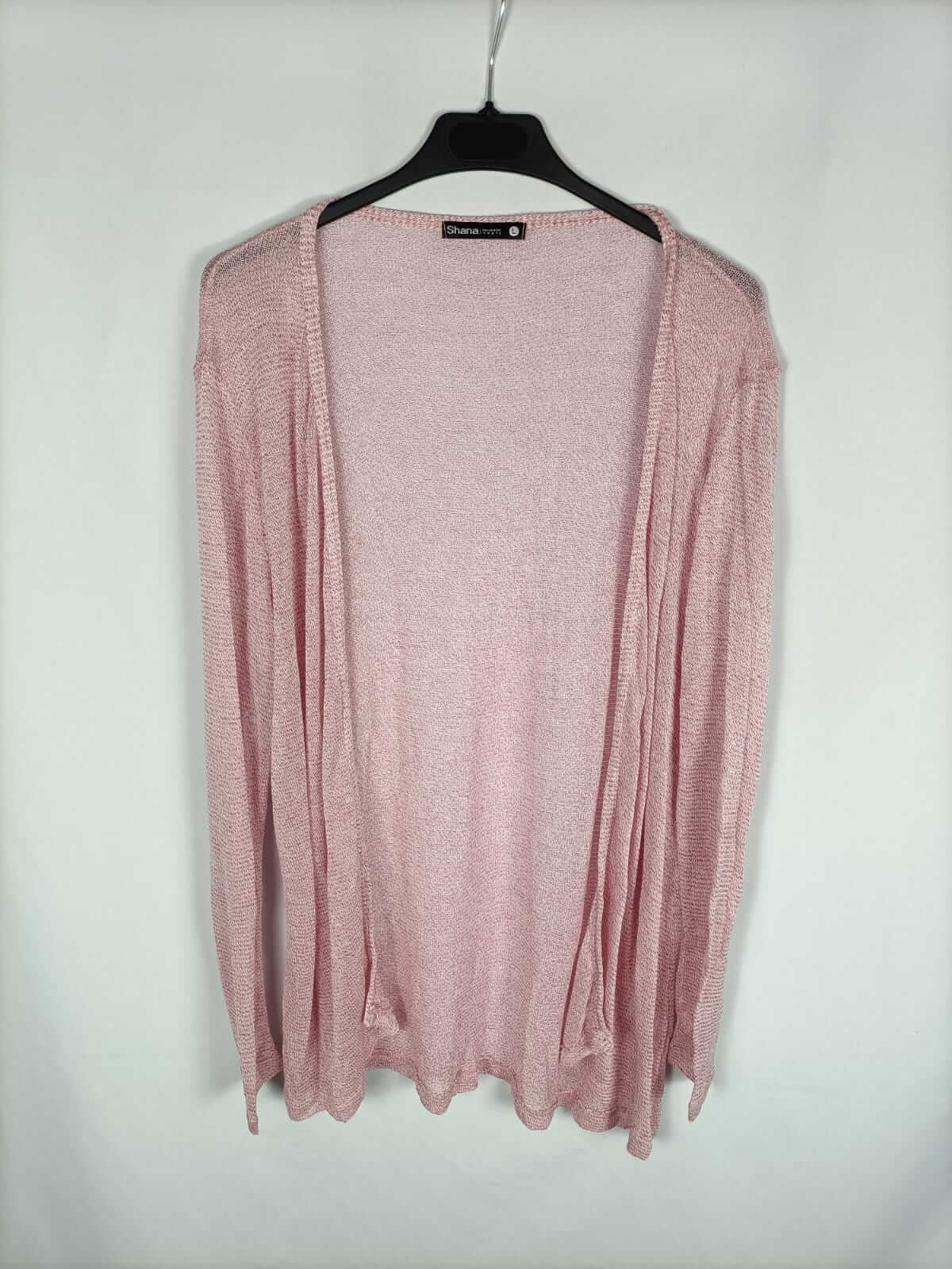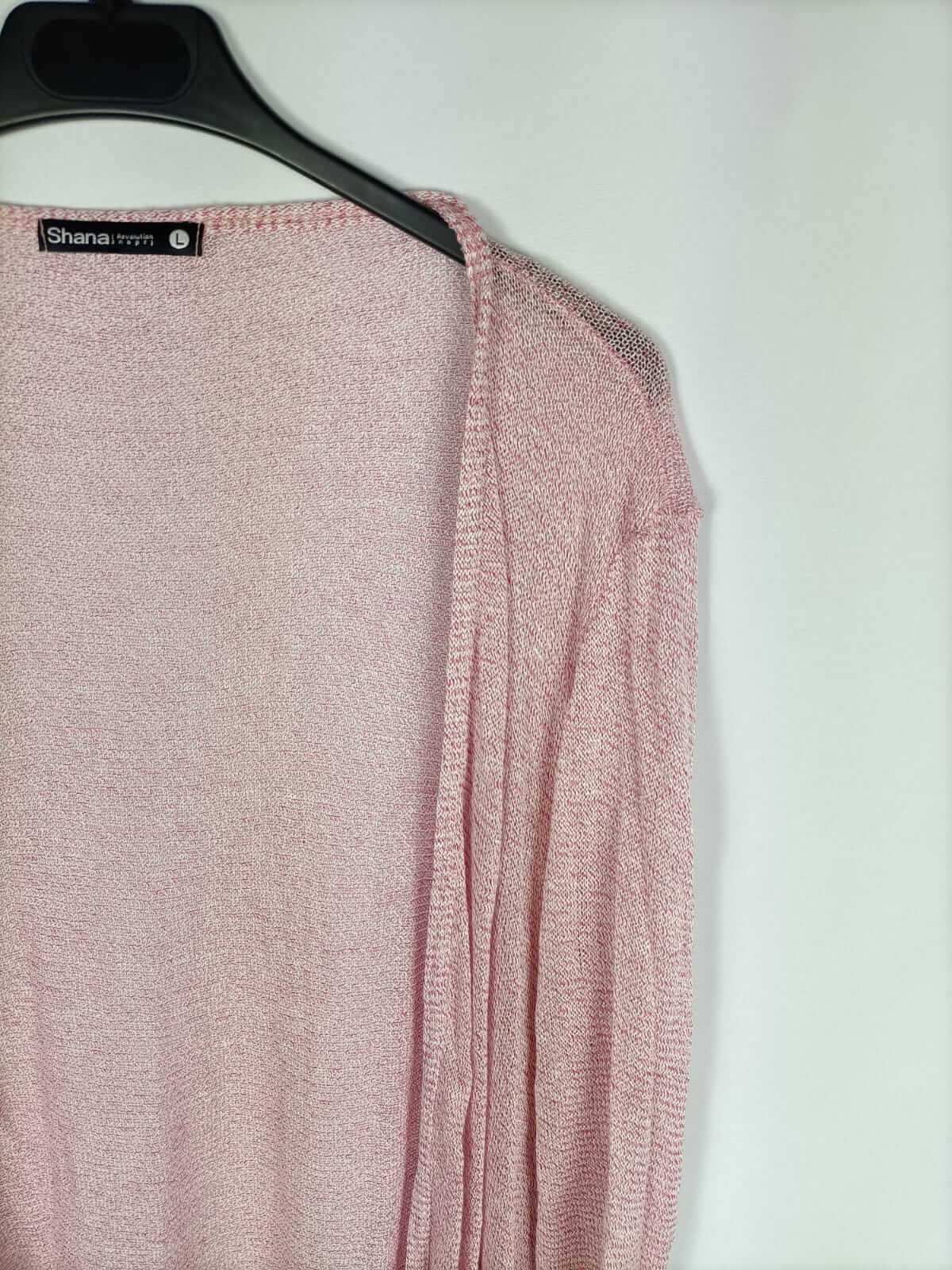 Shana. L. Rebeca jaspeada rosa y blanco muy finita y fluida. Elástica. Largo 75 cmv