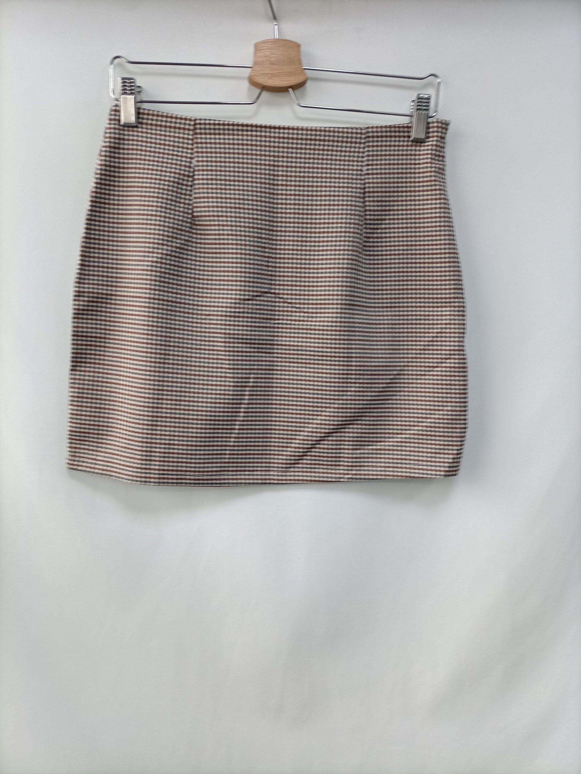 falda corta de cuadros en tonos marrones. Cintura 38 cm largo 41 cm