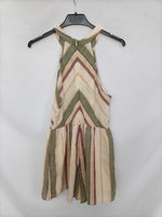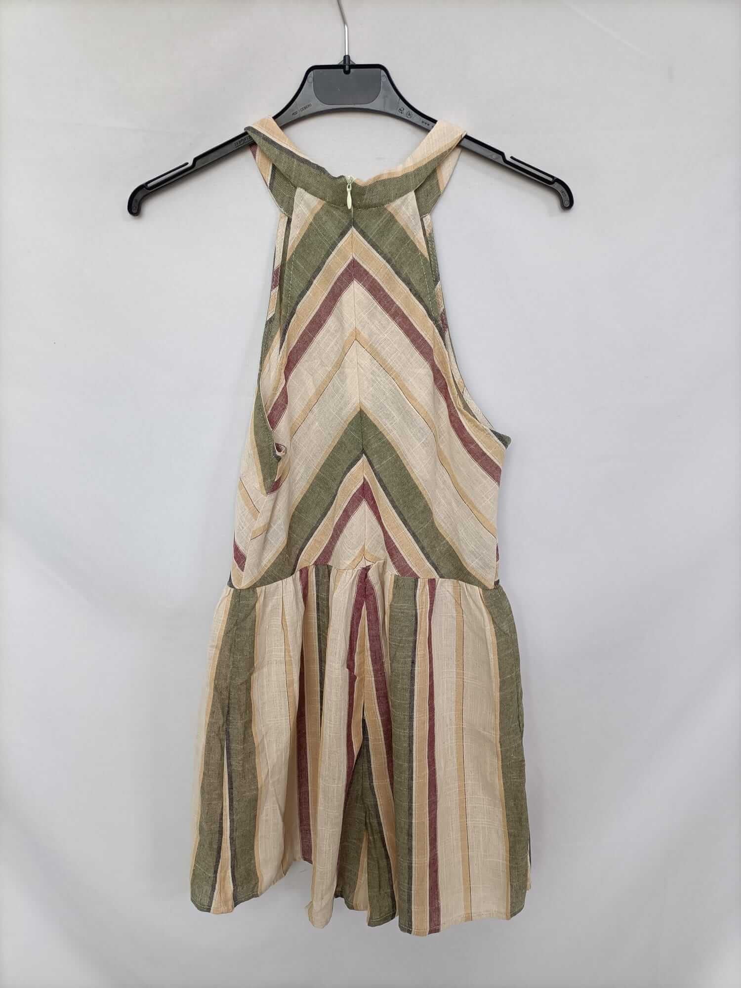 Shein. S. Mono corto de rayas con escote halter. Fluido y no elástico. De algodón. De sisa a sisa 43 cm cintura 38 cm largo 76 cm
