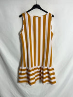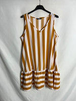 Vestido corto rayas blancas y mostazas
