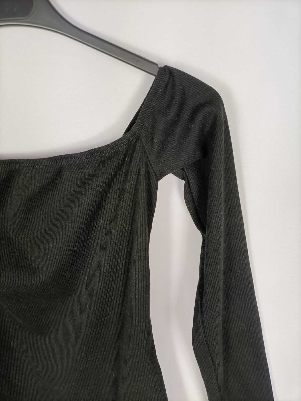 Shein.s. body negro de canalé con el escote cuadrado y tejido elástico. Largo 65 cm