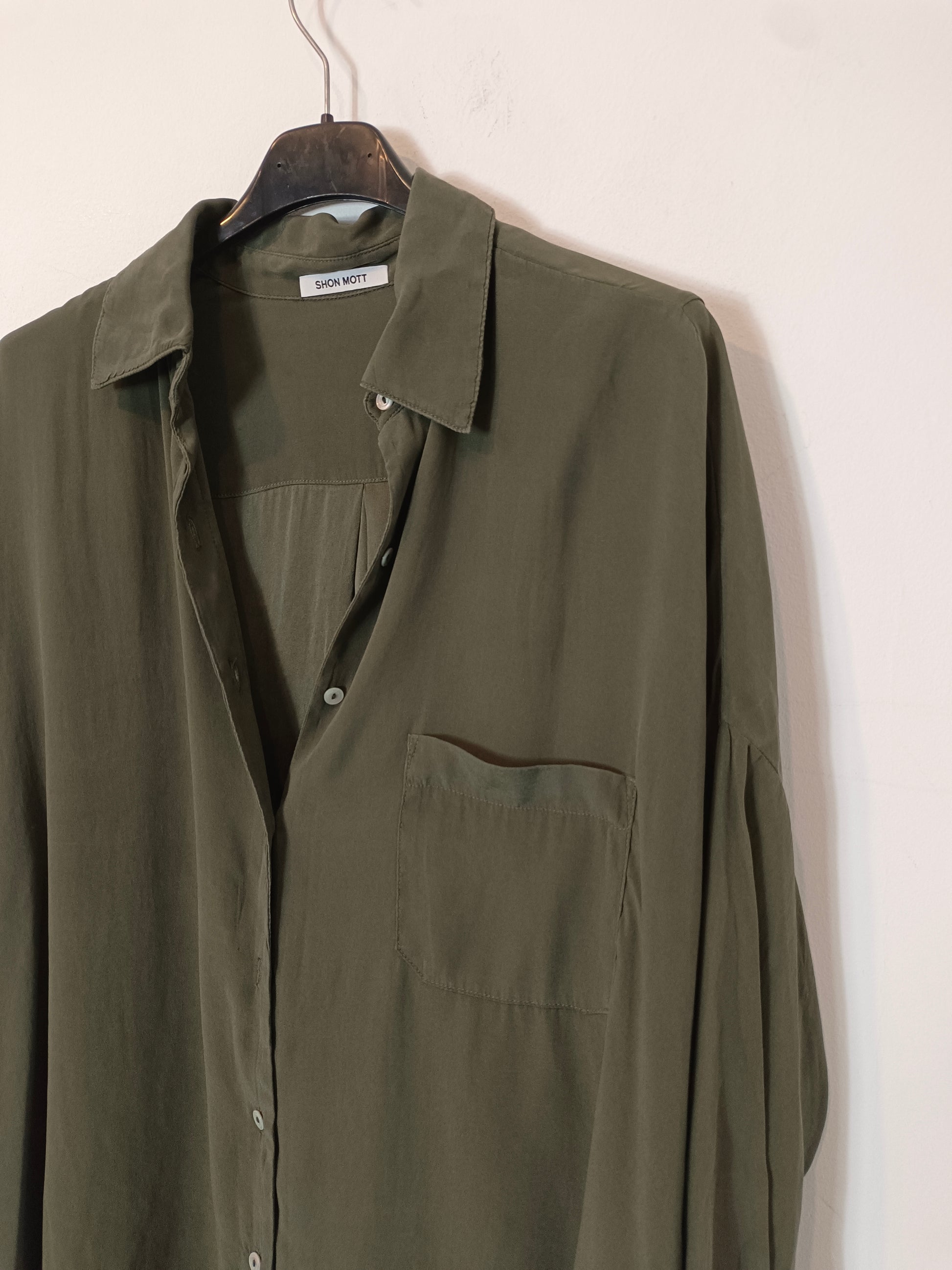 SHON MOTT. Blusa verde seda Tu(M/L)