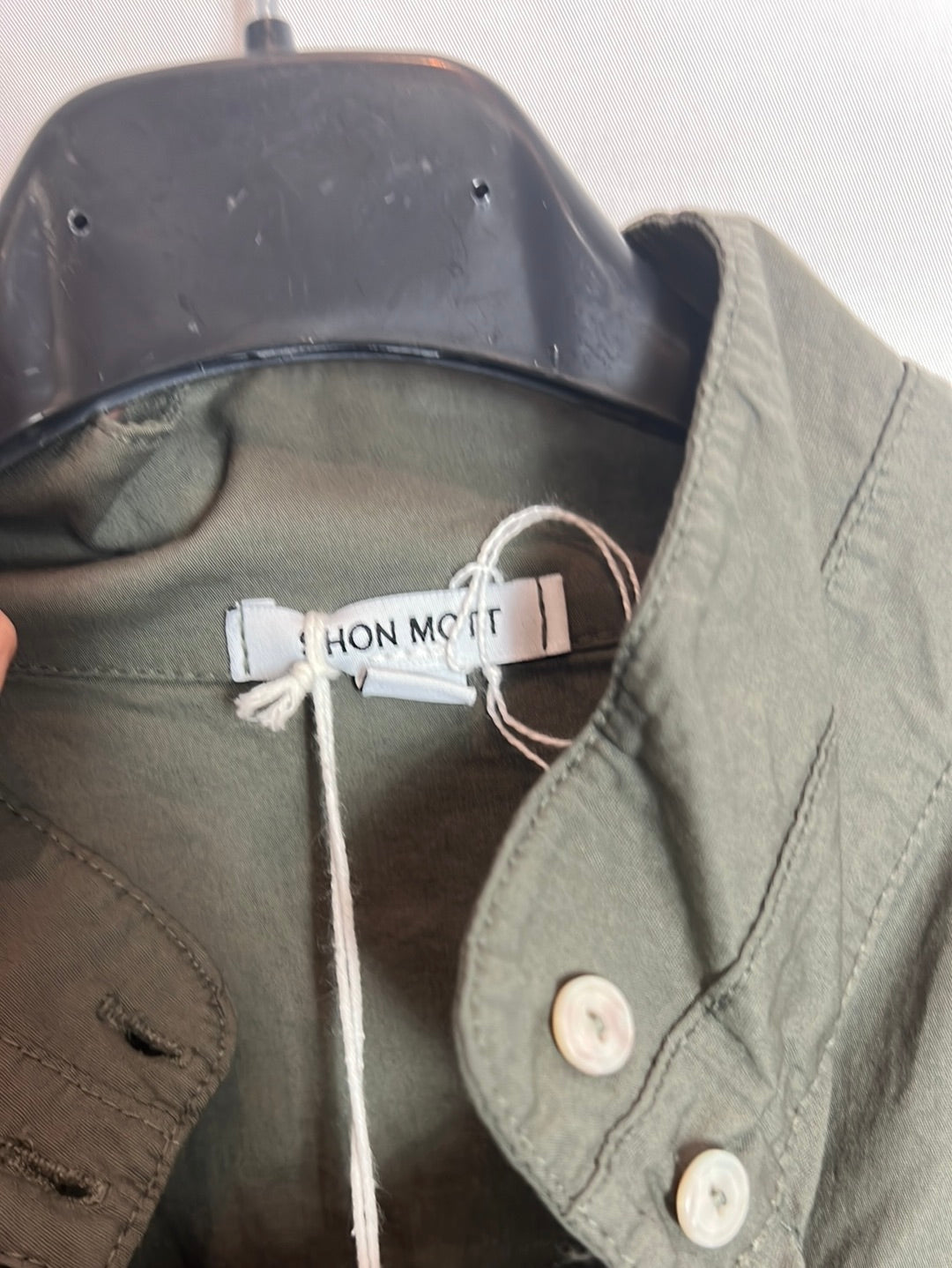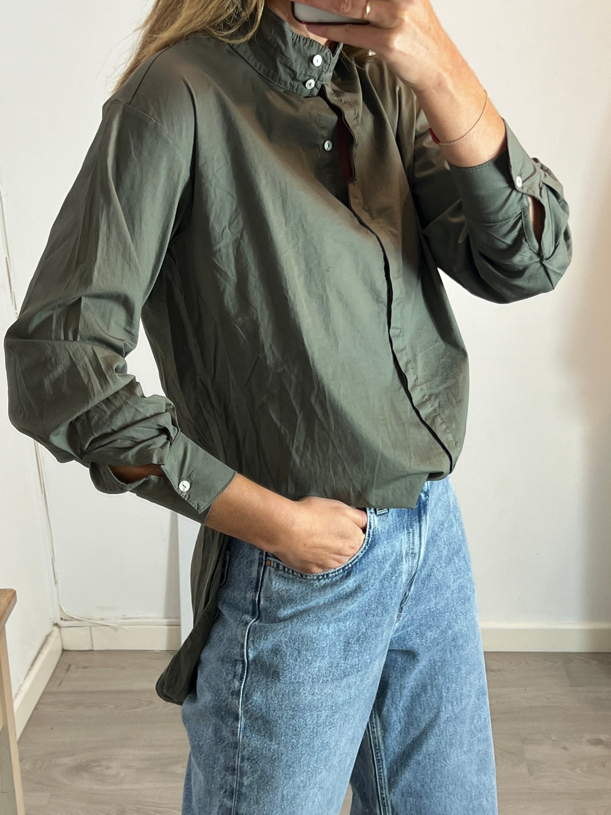 SHON MOTT. Camisa verde cuello mao. T 1(S)