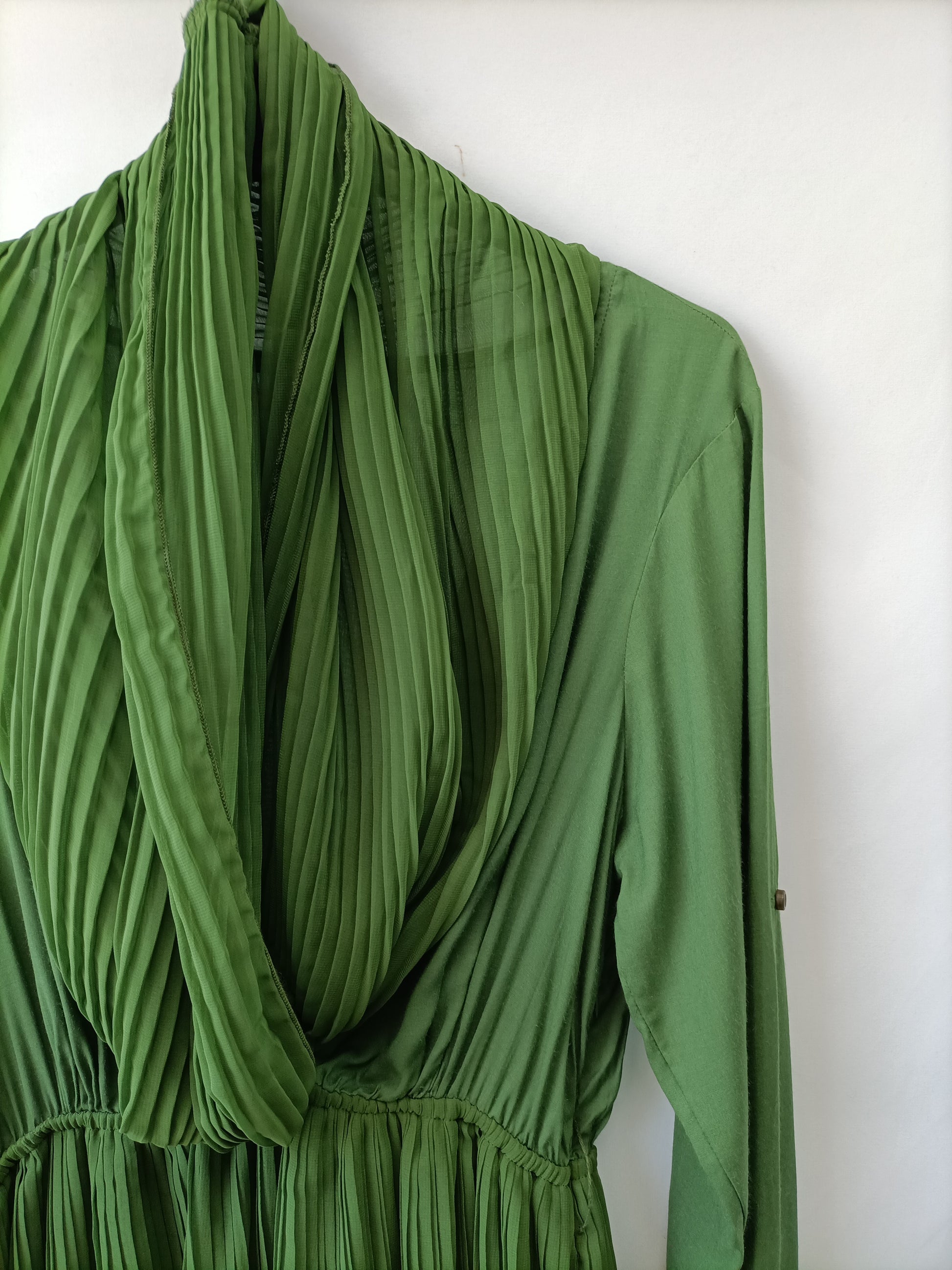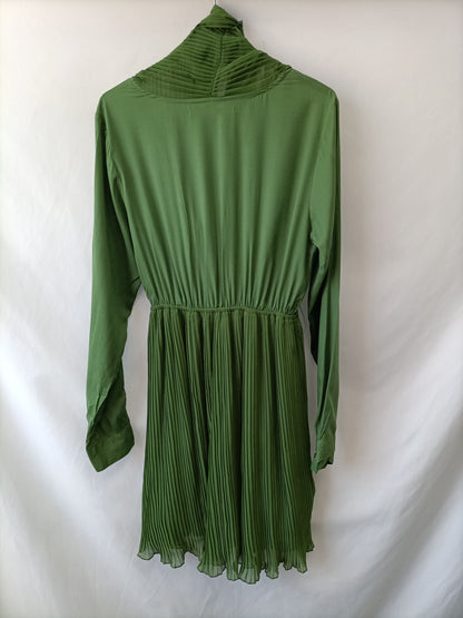 SILVIAN HEACH.Vestido verde plisado T.s