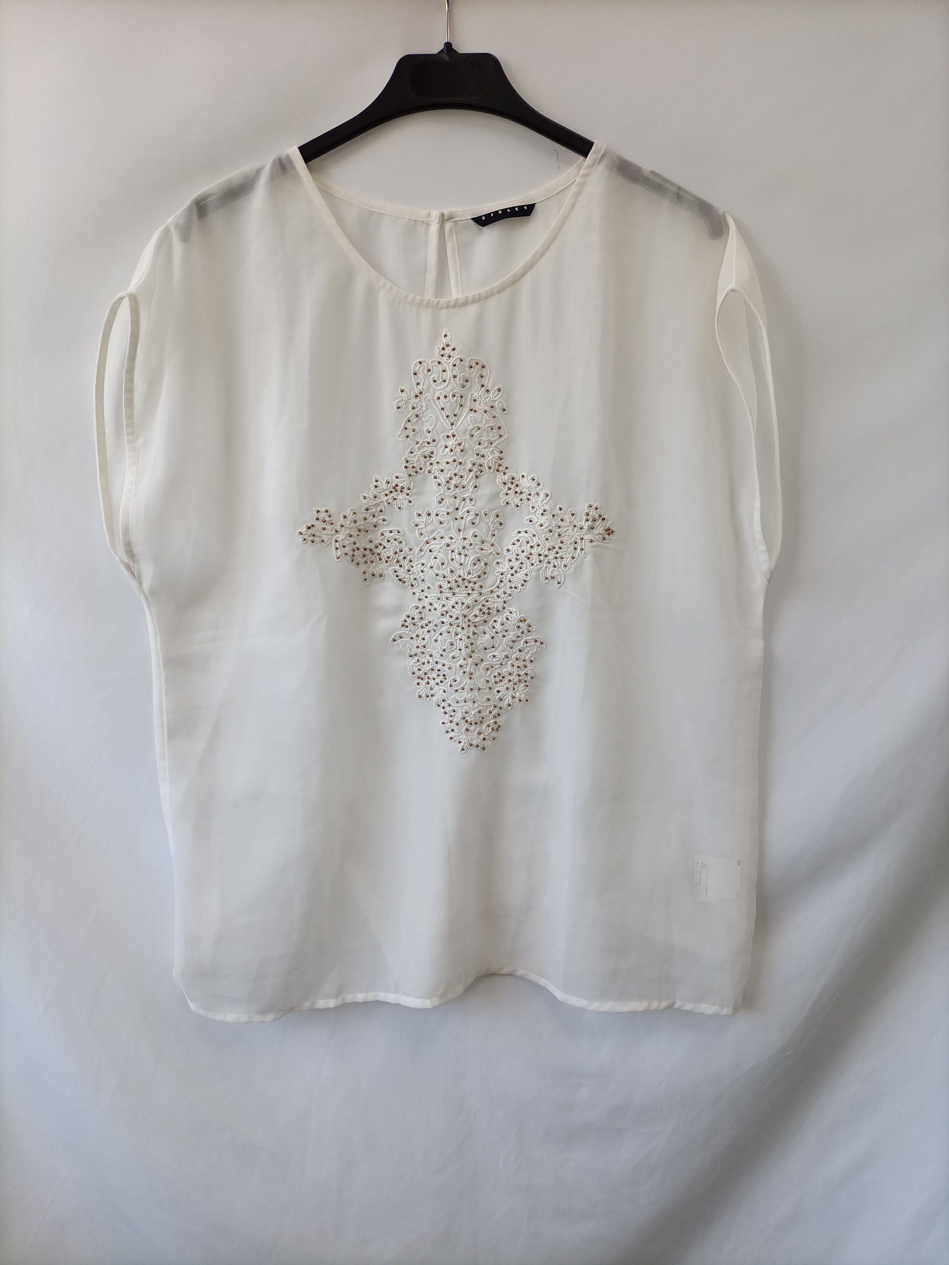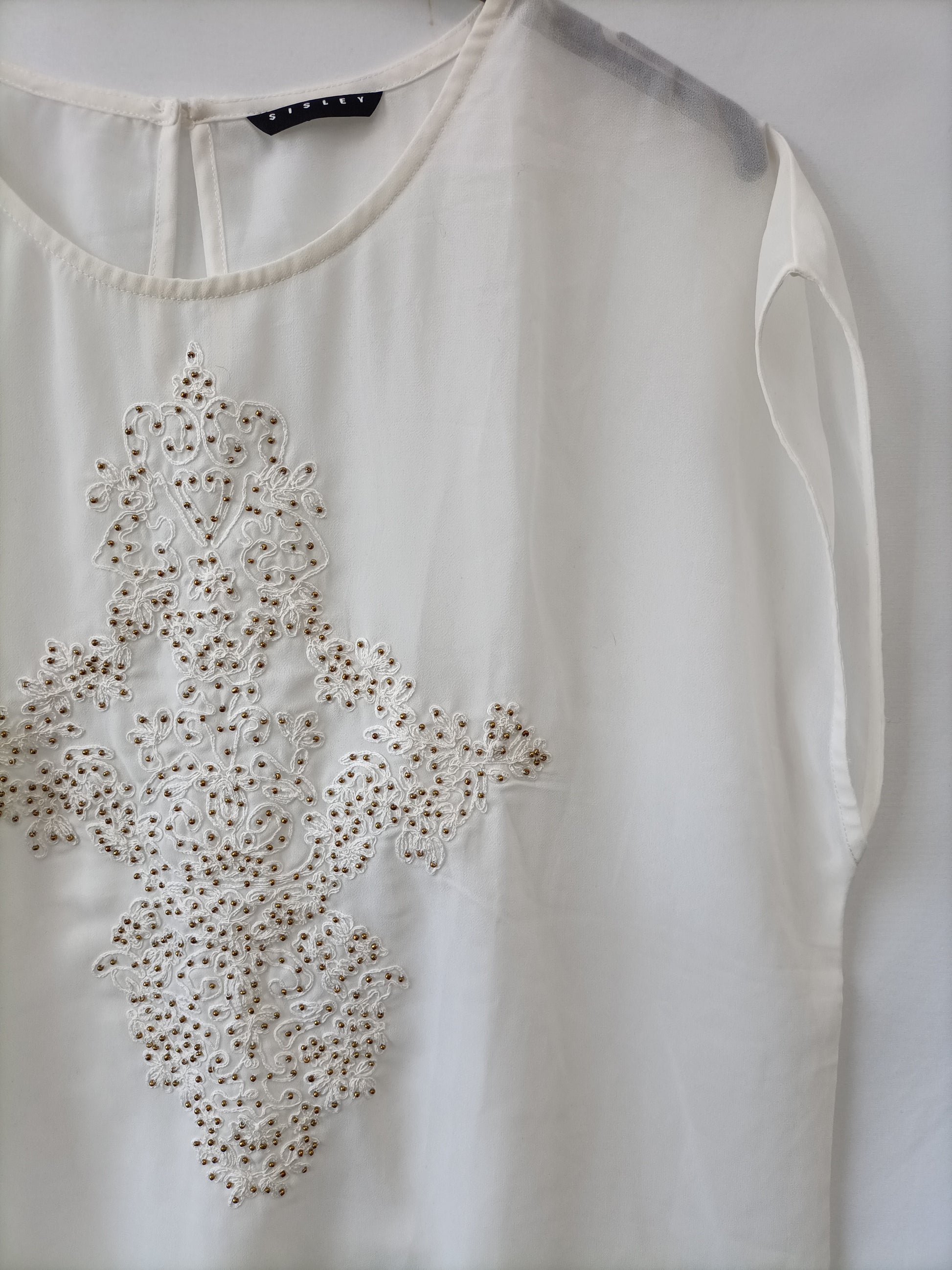 SISLEY. Blusa blanca sin mangas pelotas doradas T.l