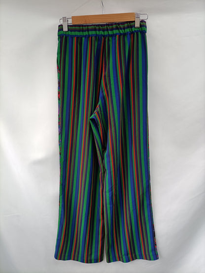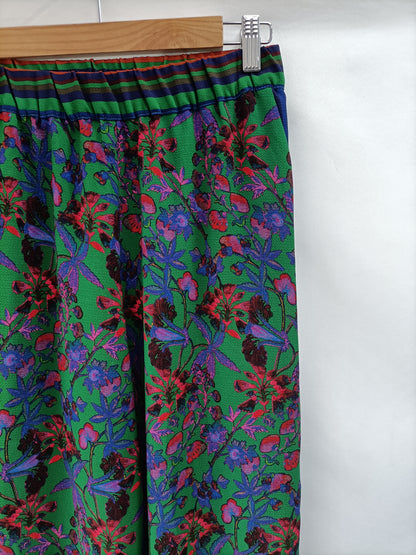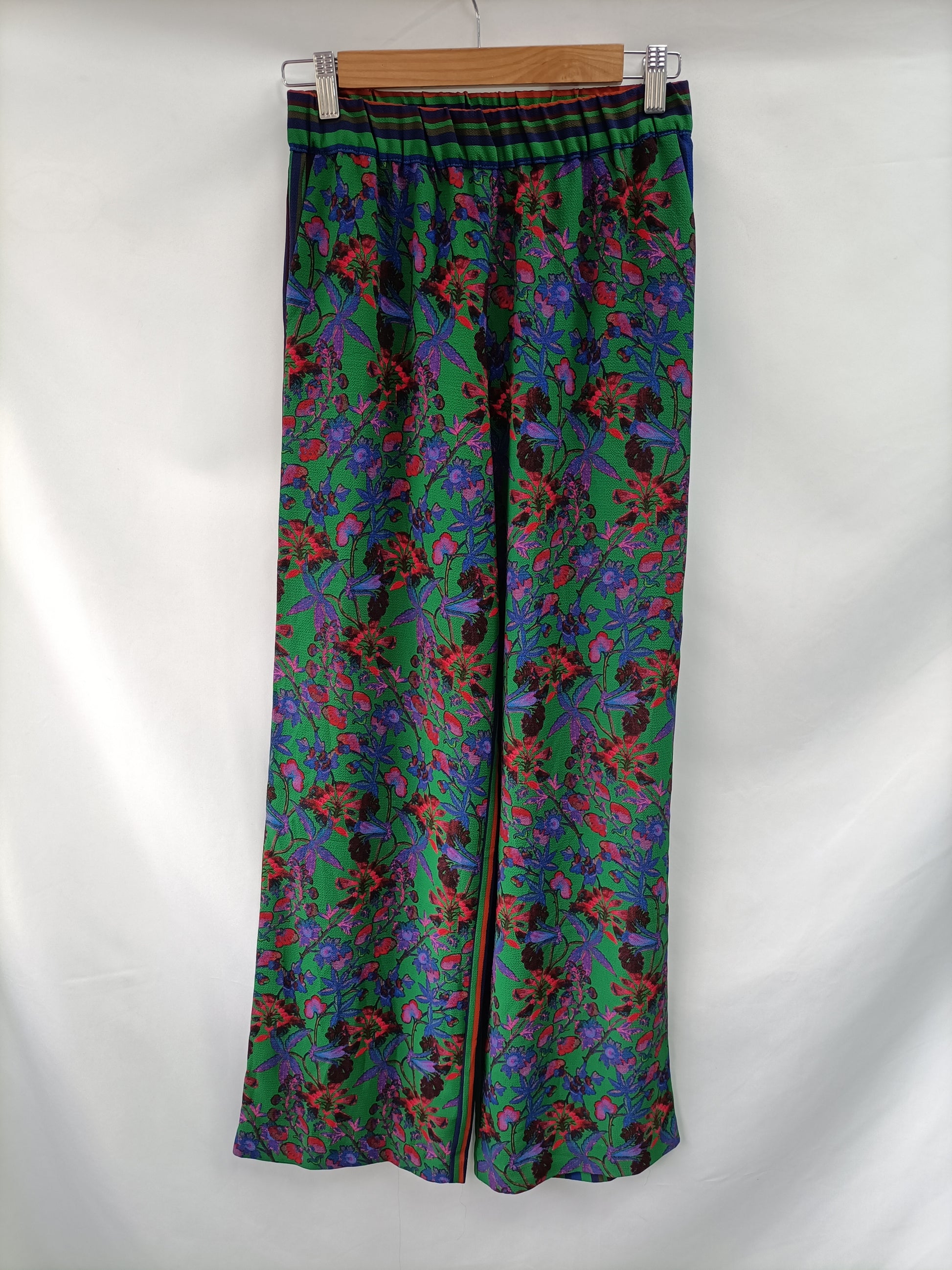 Pantalón palazzo por delante de flore y por detrás de rayas. Es fluido y fino. Cintura elástica. Largo 103 cm