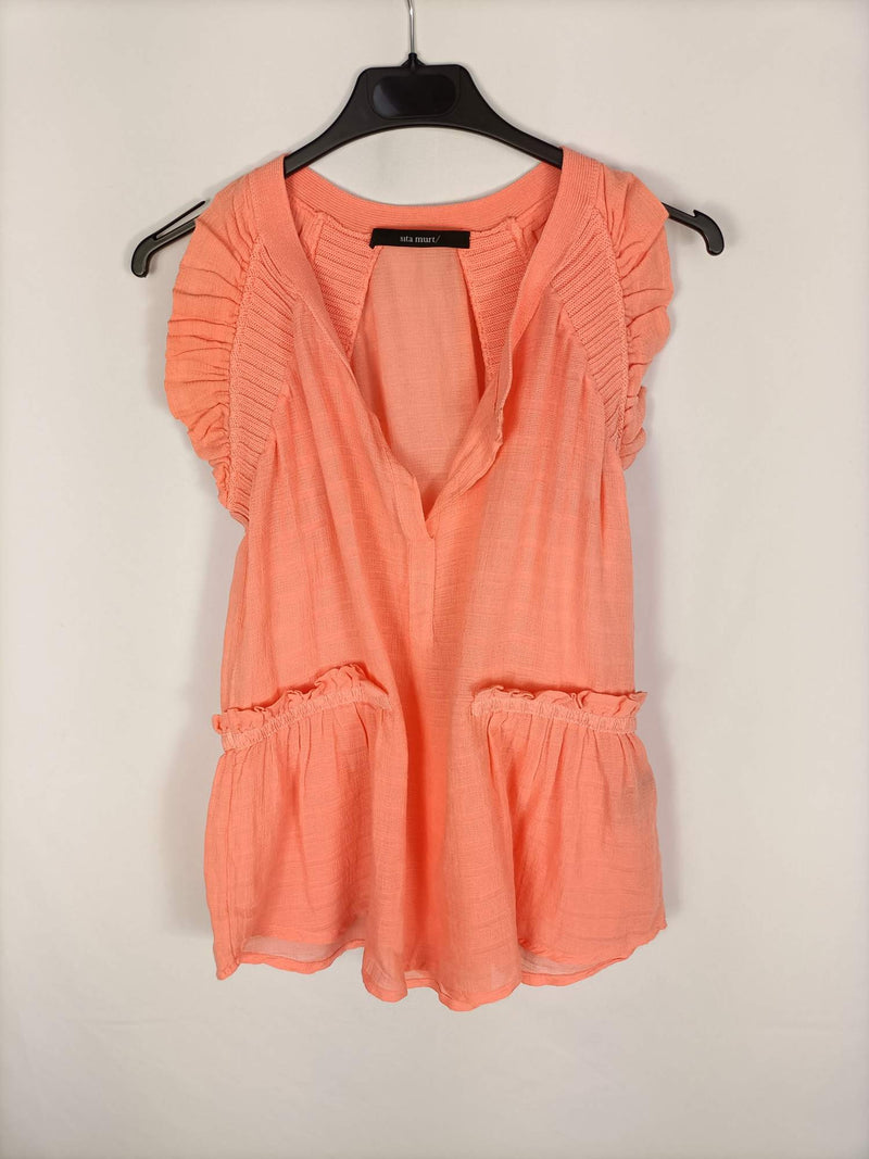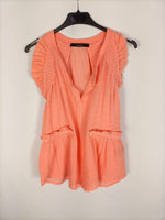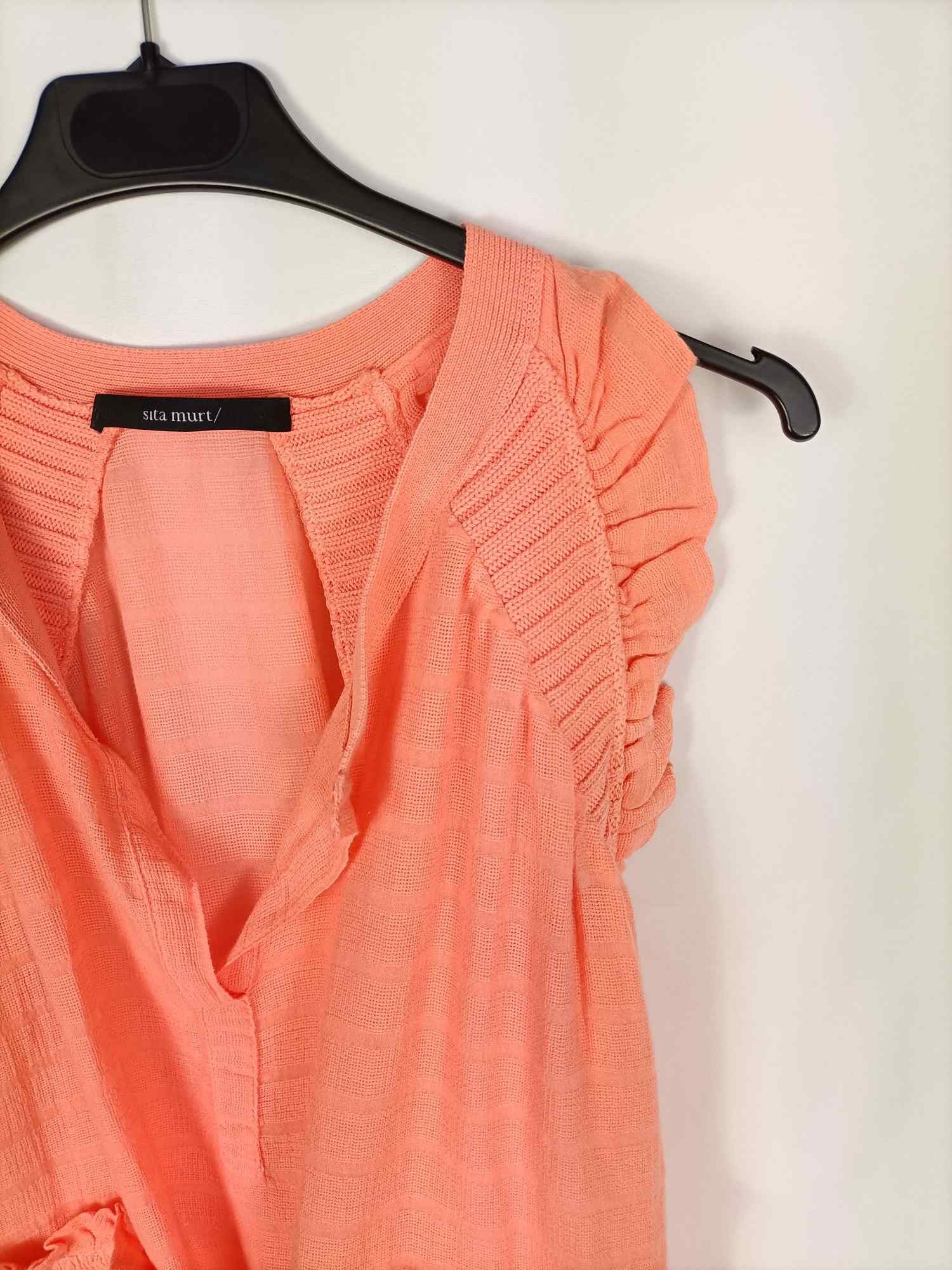 Sita murth. Top naranja fluido con volantes de algodón. Fluido y elastico. Largo 64 cm