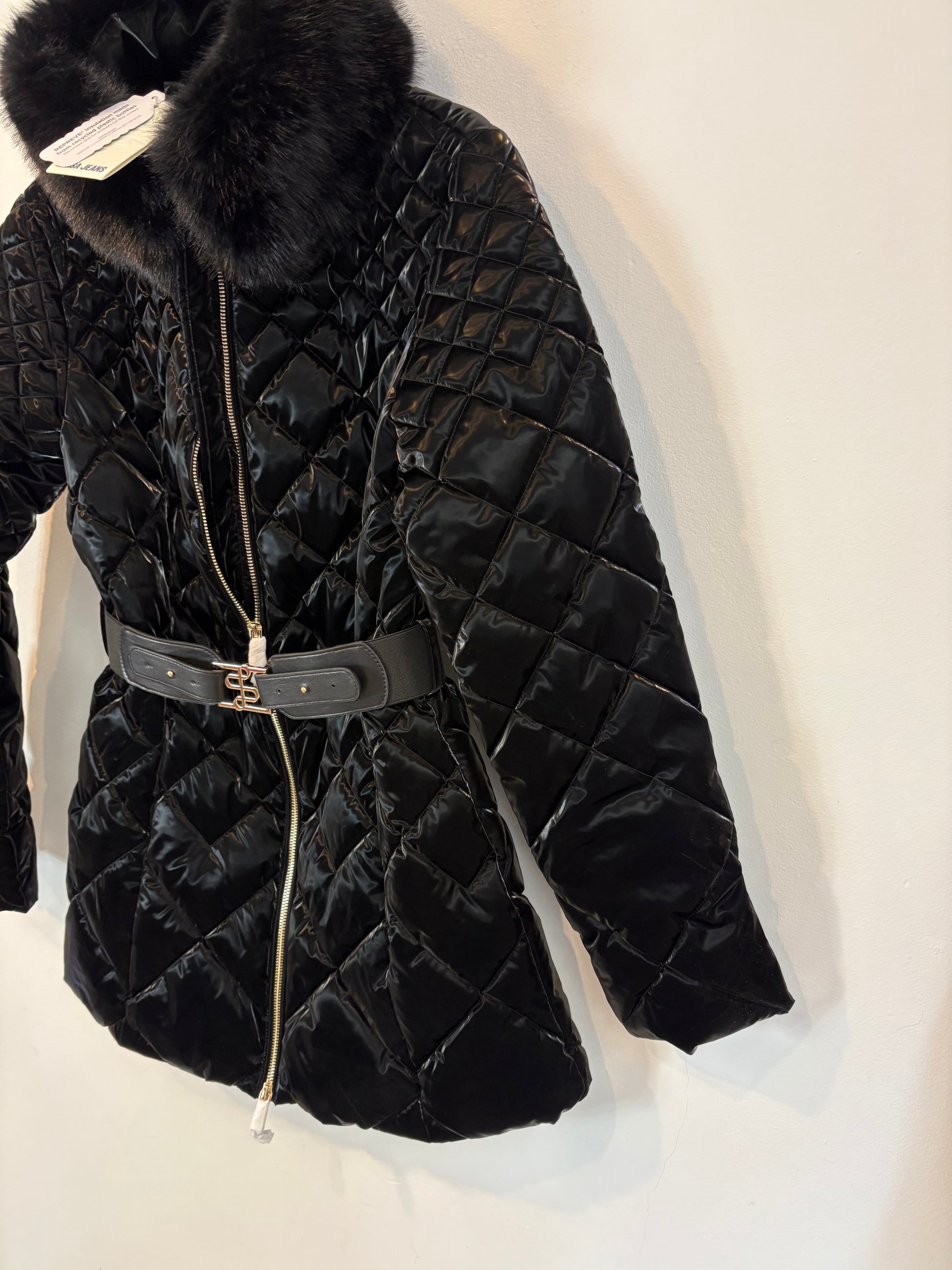SALSA JEANS. Abrigo acolchado negro textura