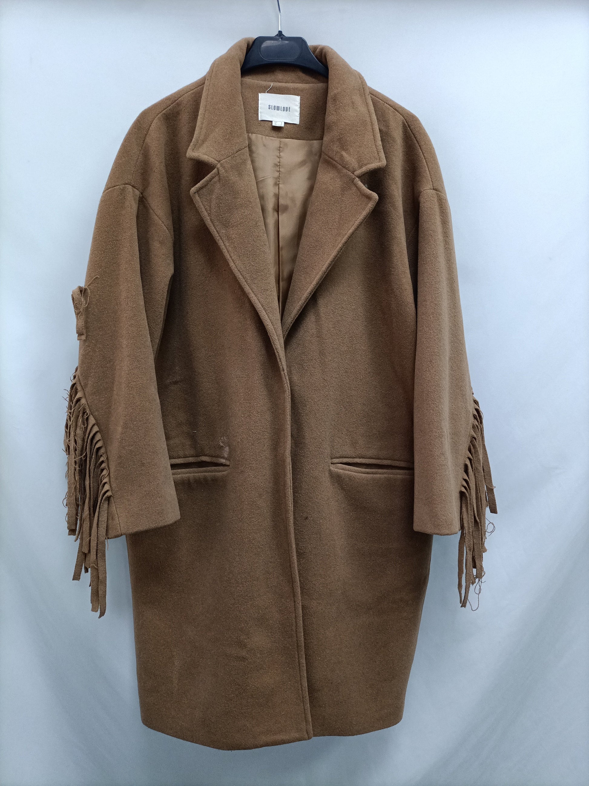 SLOWLOVE. Abrigo paño flecos T.s (tara)