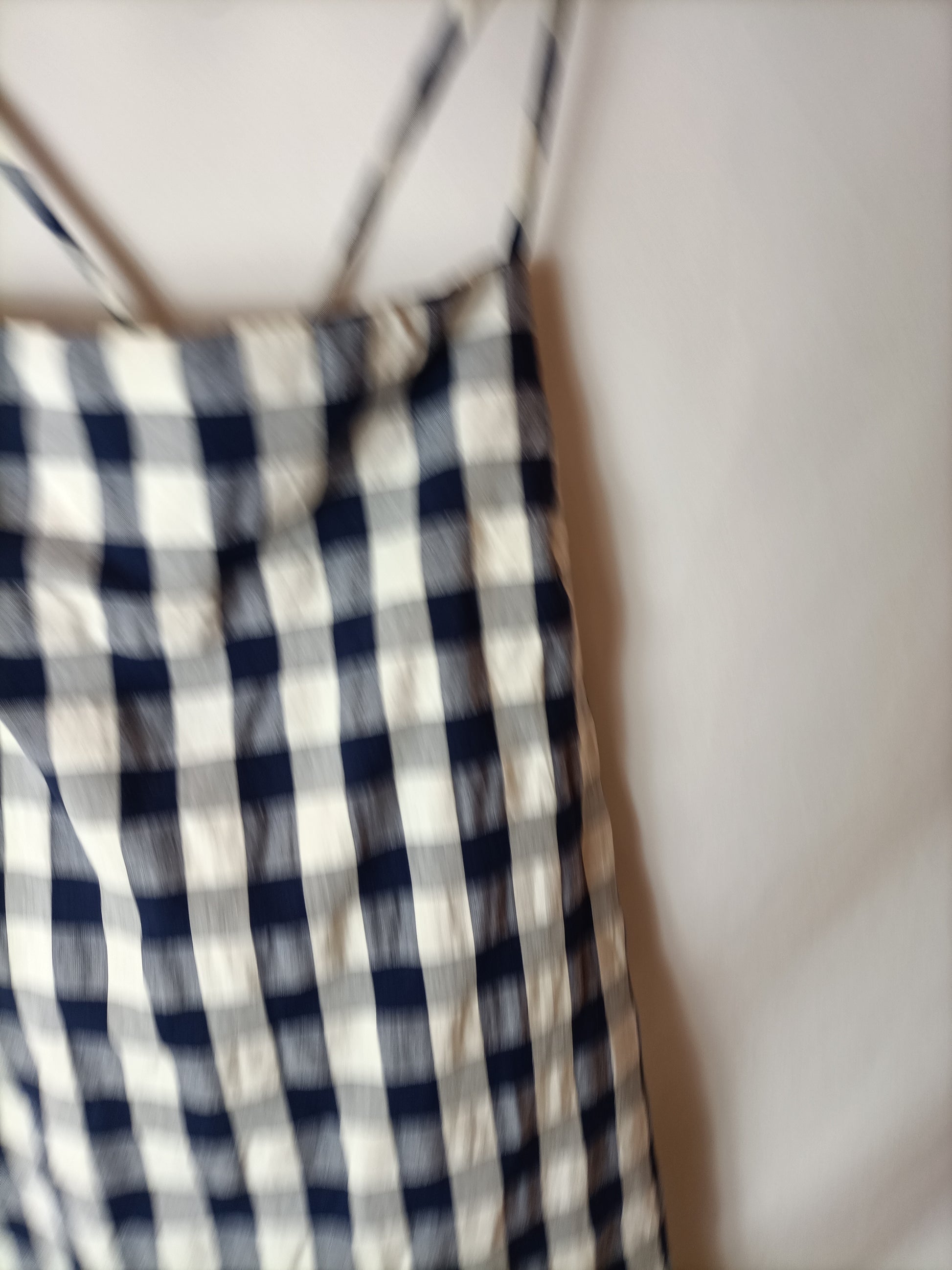 Vestido corto de cuadros vichy azul y blanco. Tirantes ajustables y espalda baja