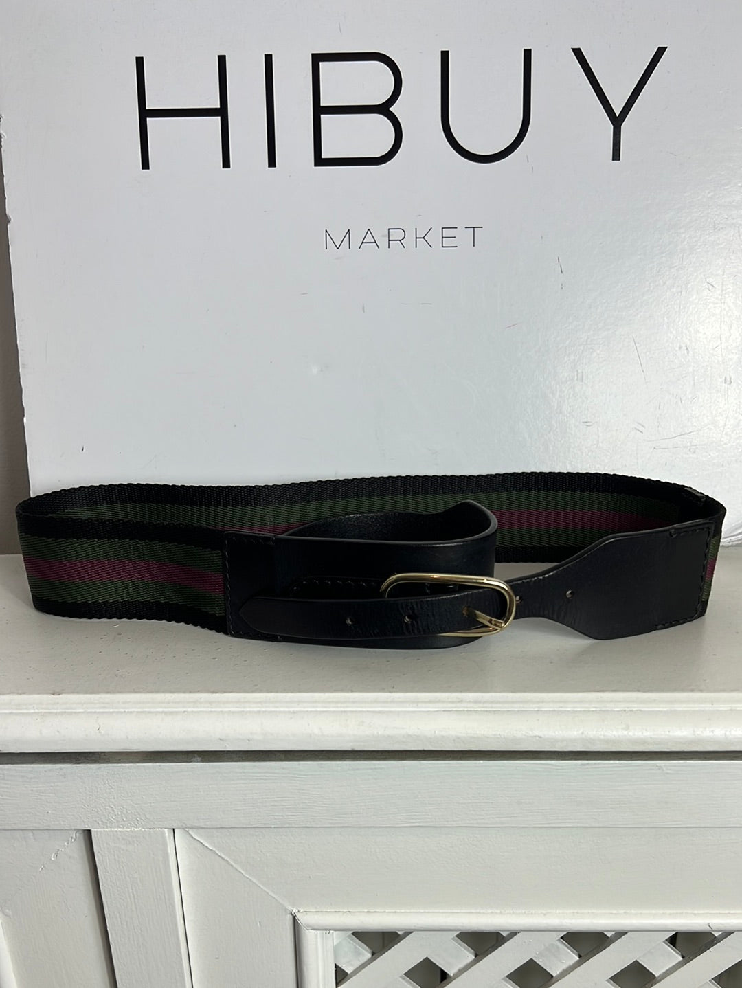 Cinturón doble textura . Piel y tela elástica rayas. Largo total 110cm