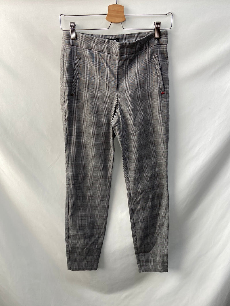 Leggins de cuadros en tonos grises, negros y blancos. Muy elástico. Largo 91 cm.