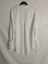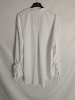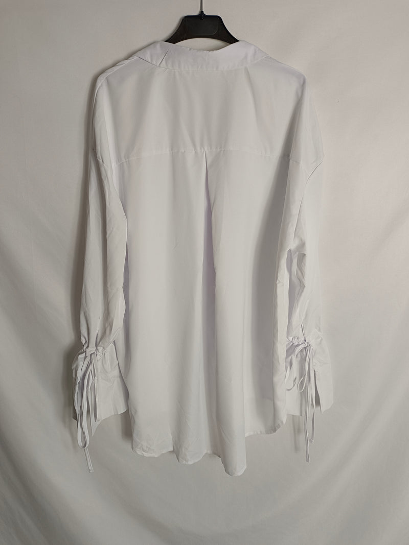 Blusa blanca oversized con detalla de lazada en las mangas.