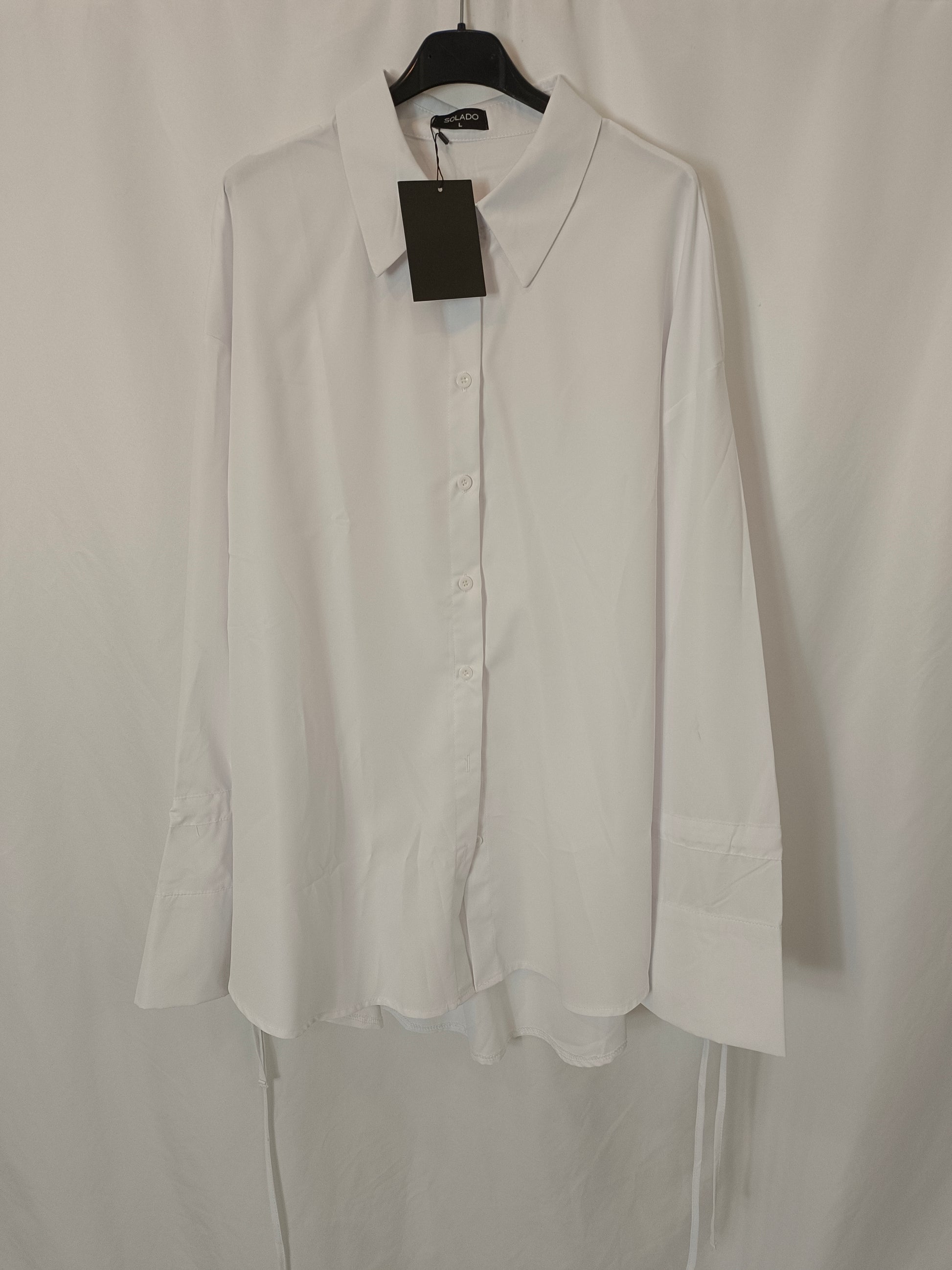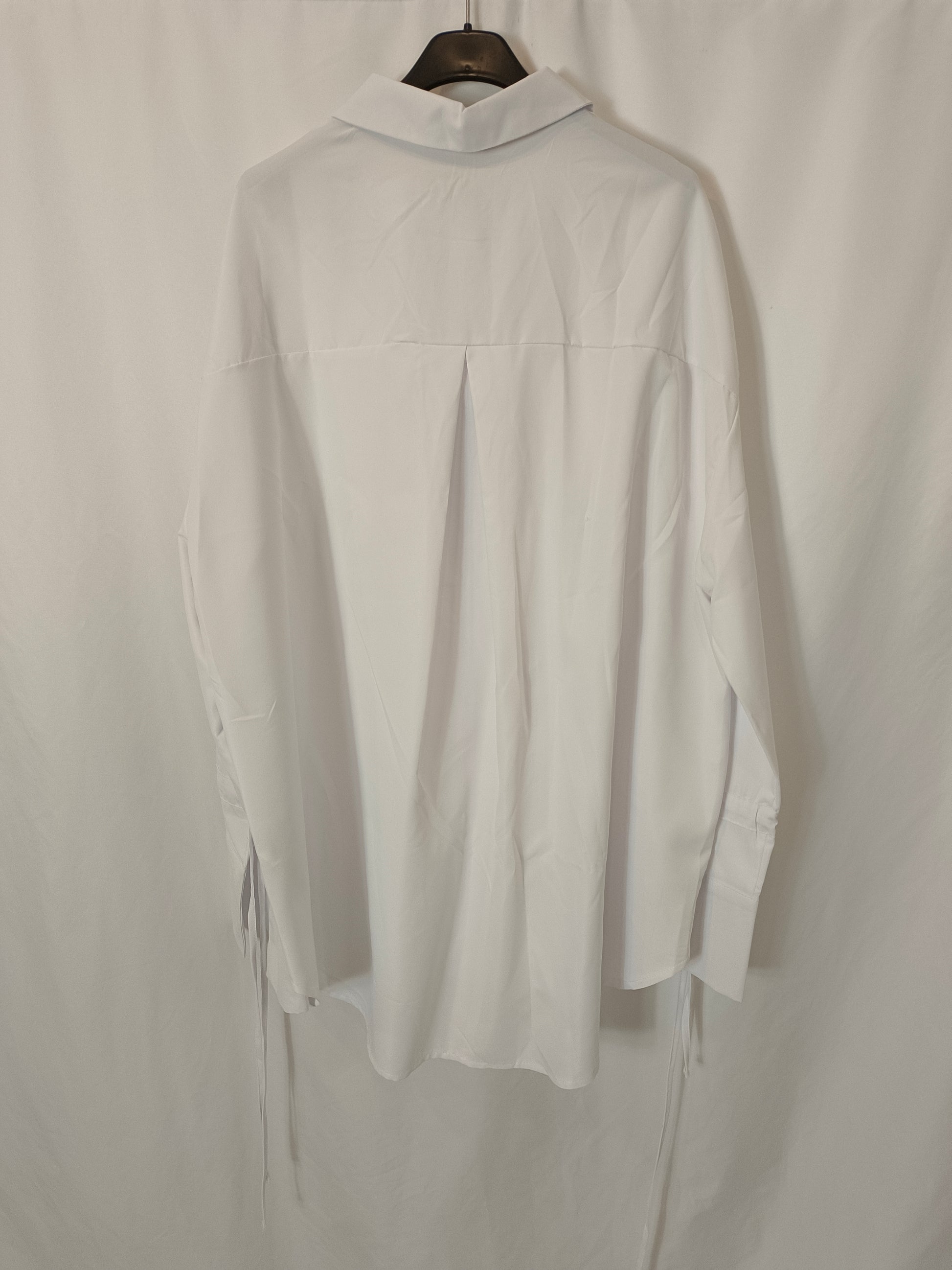 NUEVO CON ETIQUETA. Vestido/ blusa blanca larga con detalle de lazada en las mangas. Espalda 61 cm Largo 91 cm