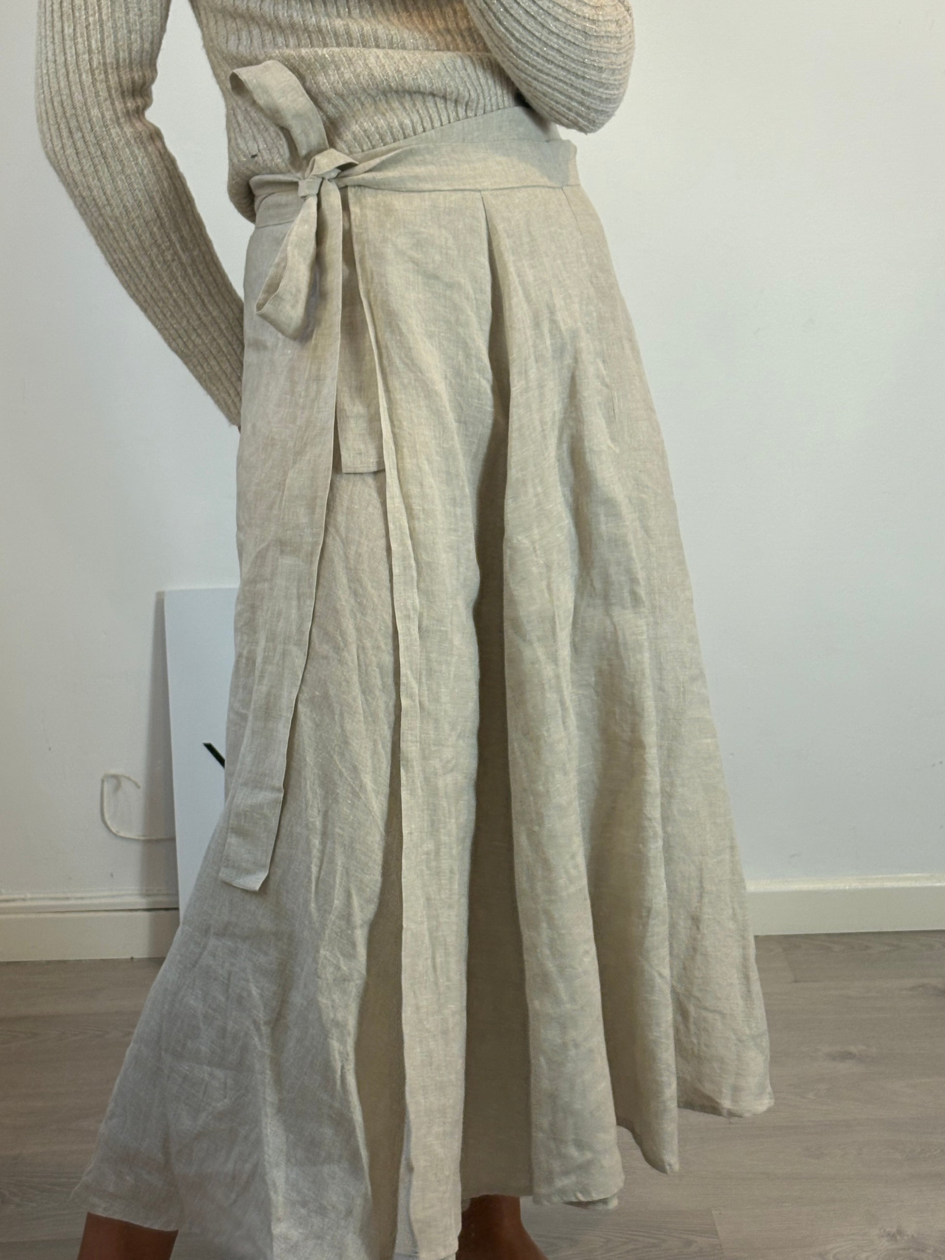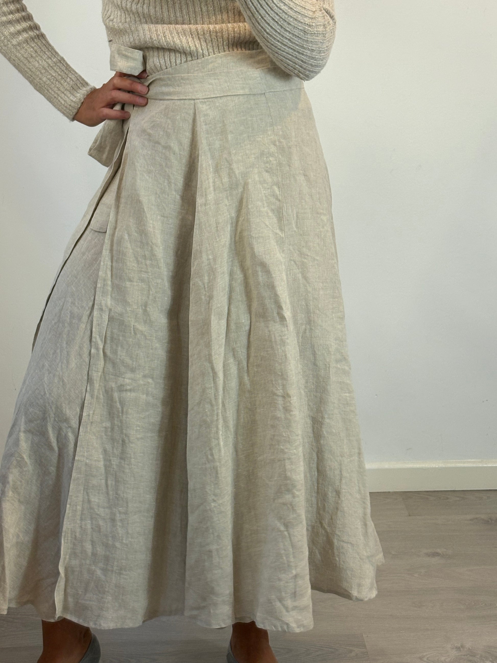 SON FINESTRA MENORCA. Falda pareo larga lino beige. TU