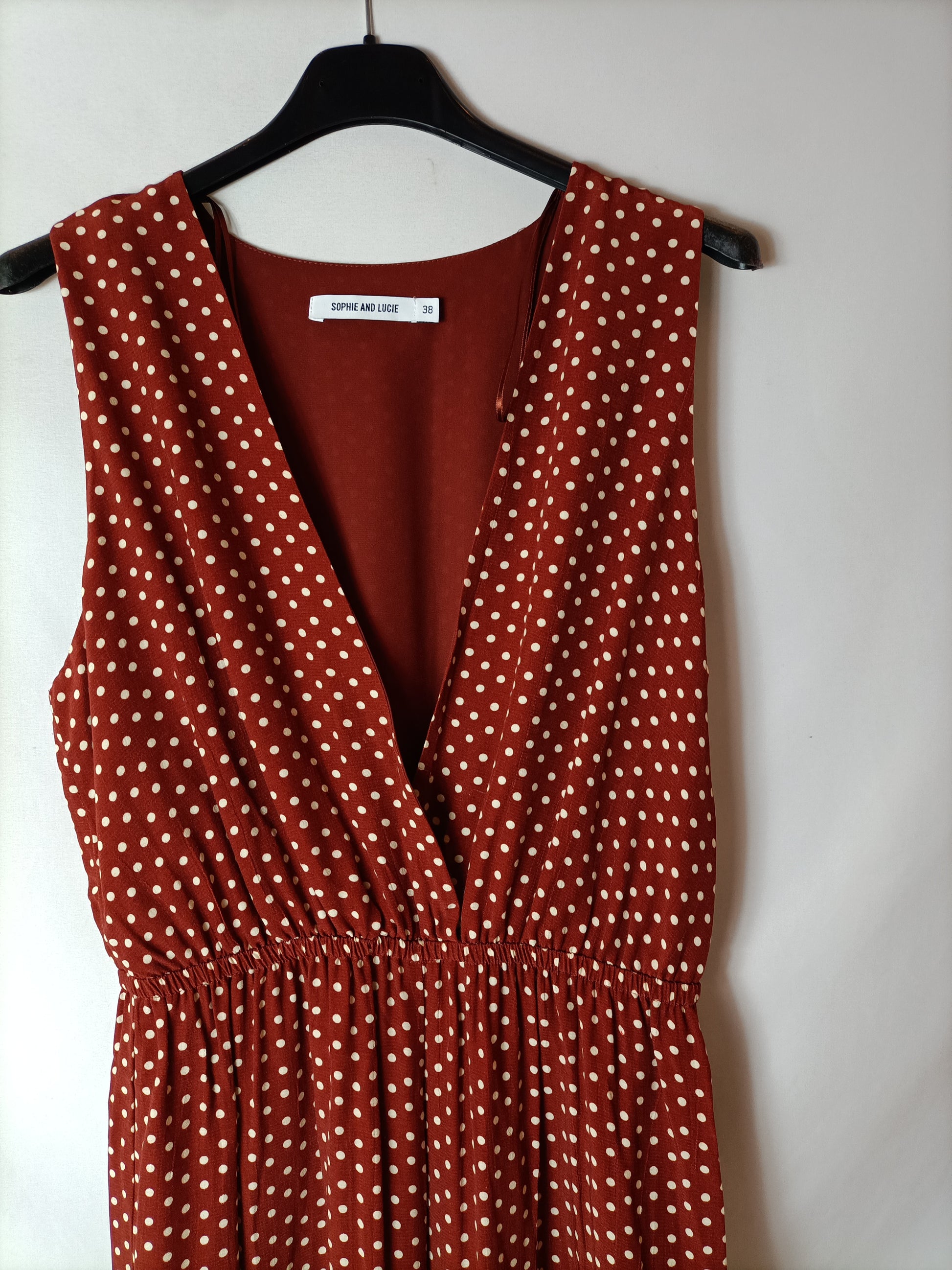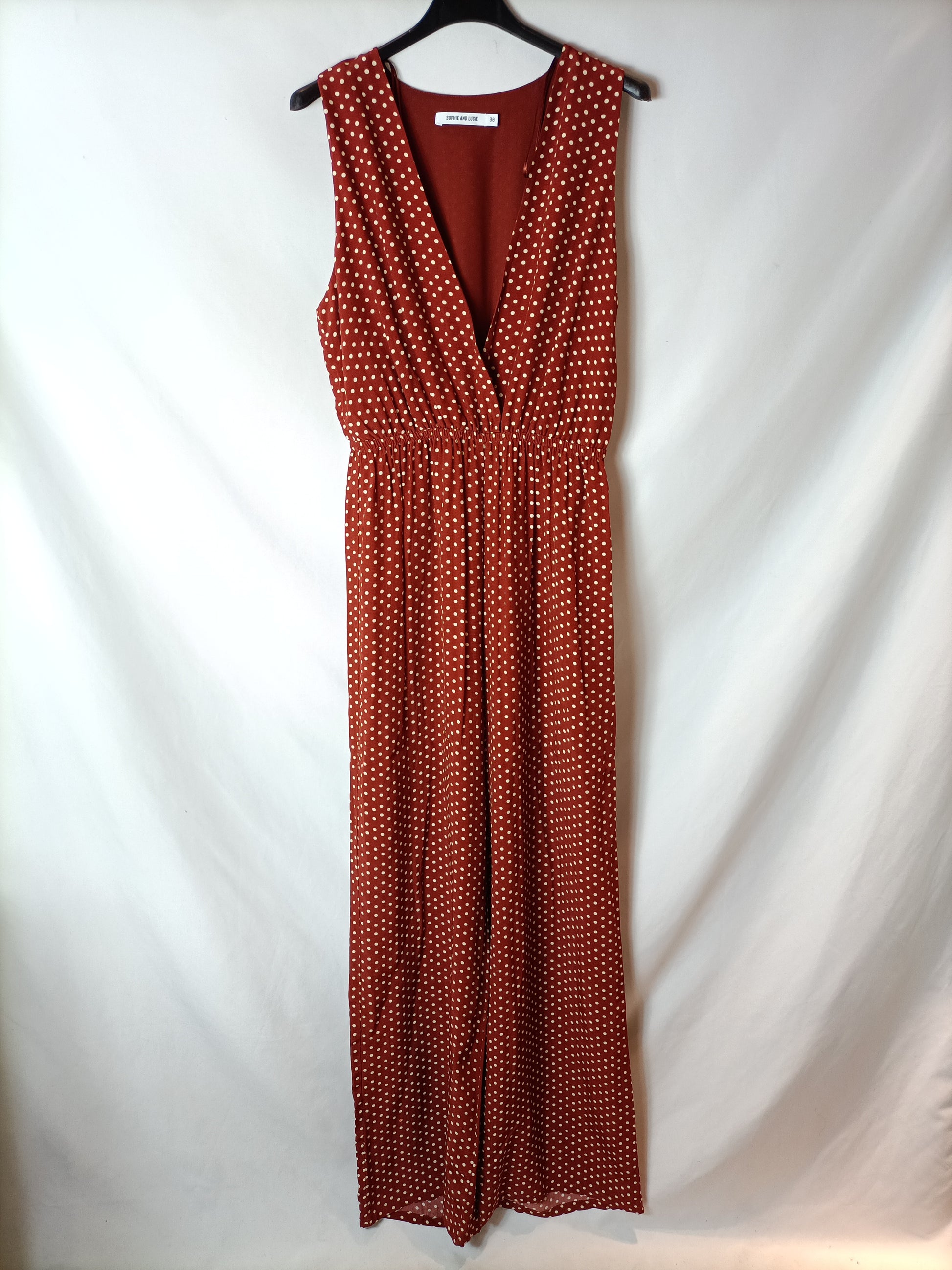 Mono largo palazzo teja con lunares. cintura elástica. largo 68 cm .