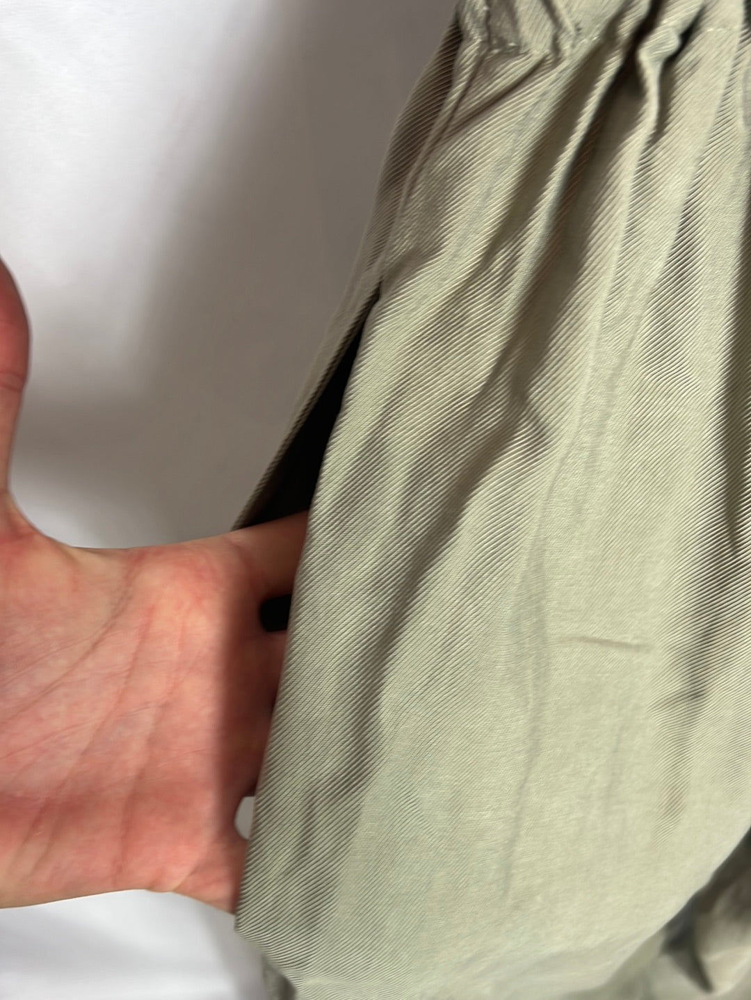 Mono verde con parte de arriba estilo volante. Cintura elástica 30cm, largo 135cm