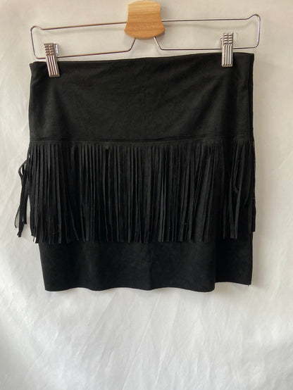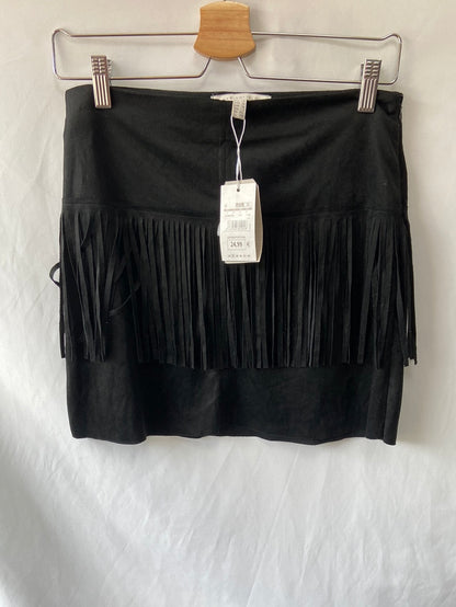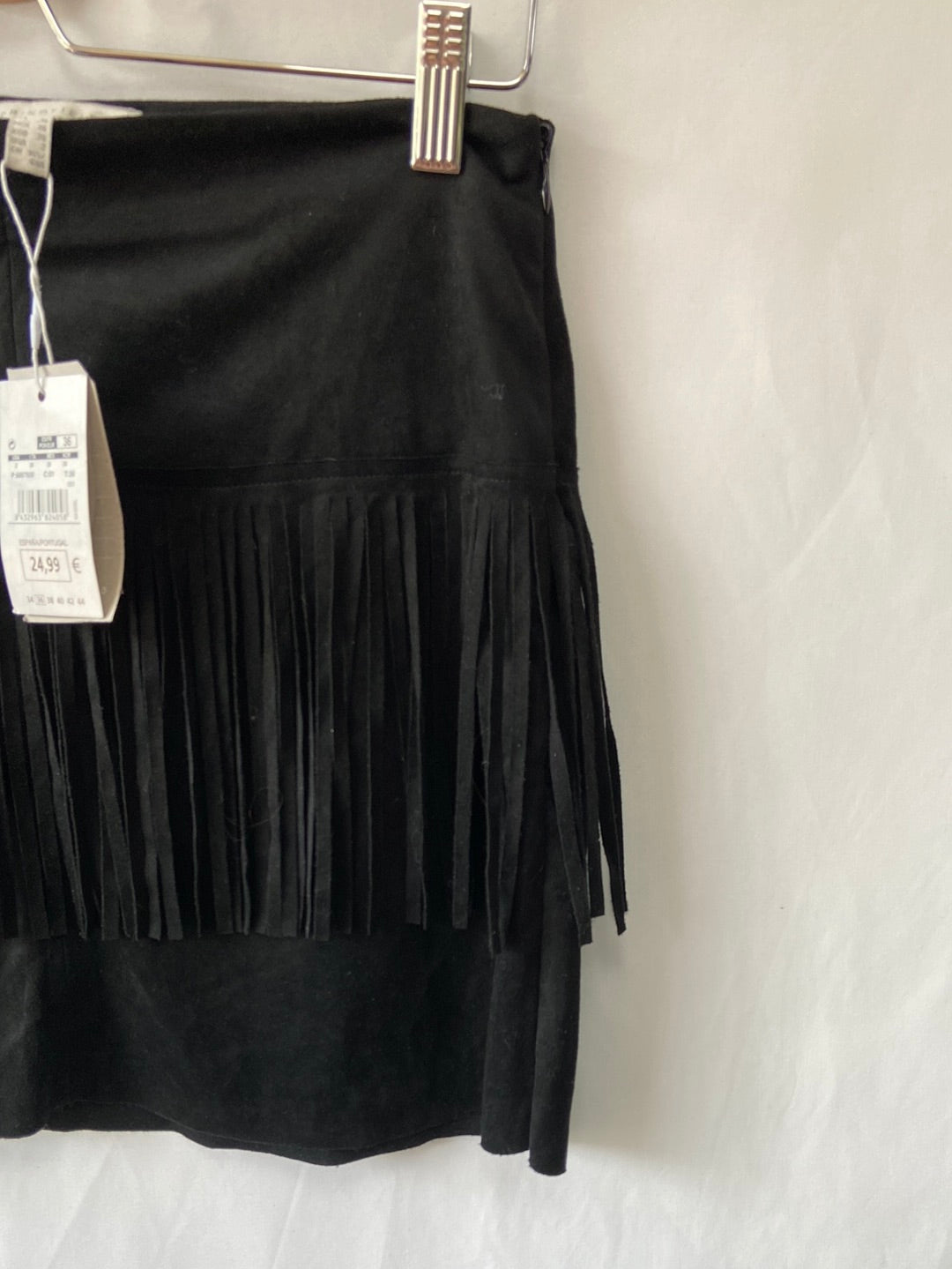 NUEVA CON ETIQUETA. Falda elástica con cremallera lateral. Antelina. Flecos. Largo 40 cm