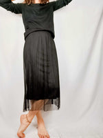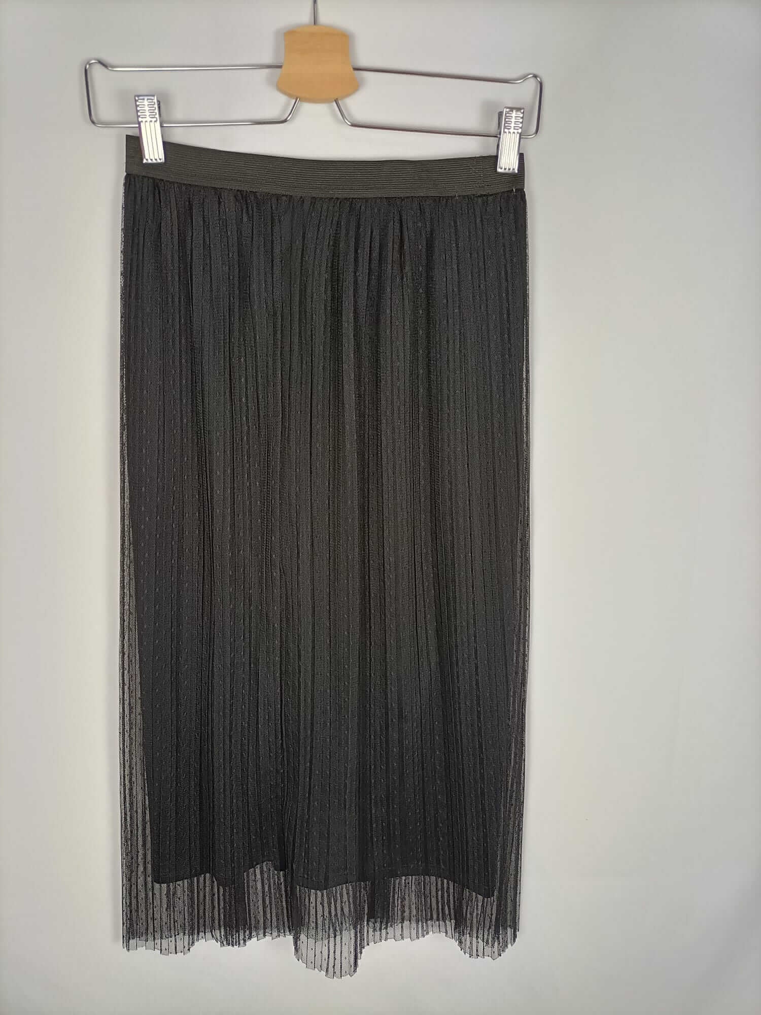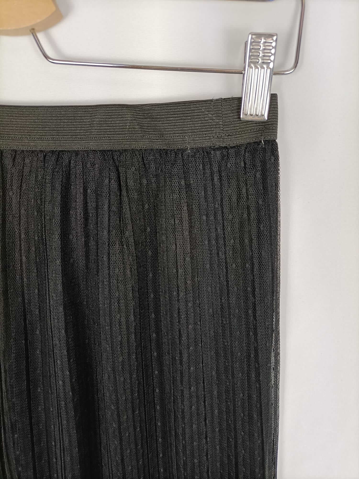 Springfield. Falda midi negra de tull y plumeti. Elástico. Largo 80 cm