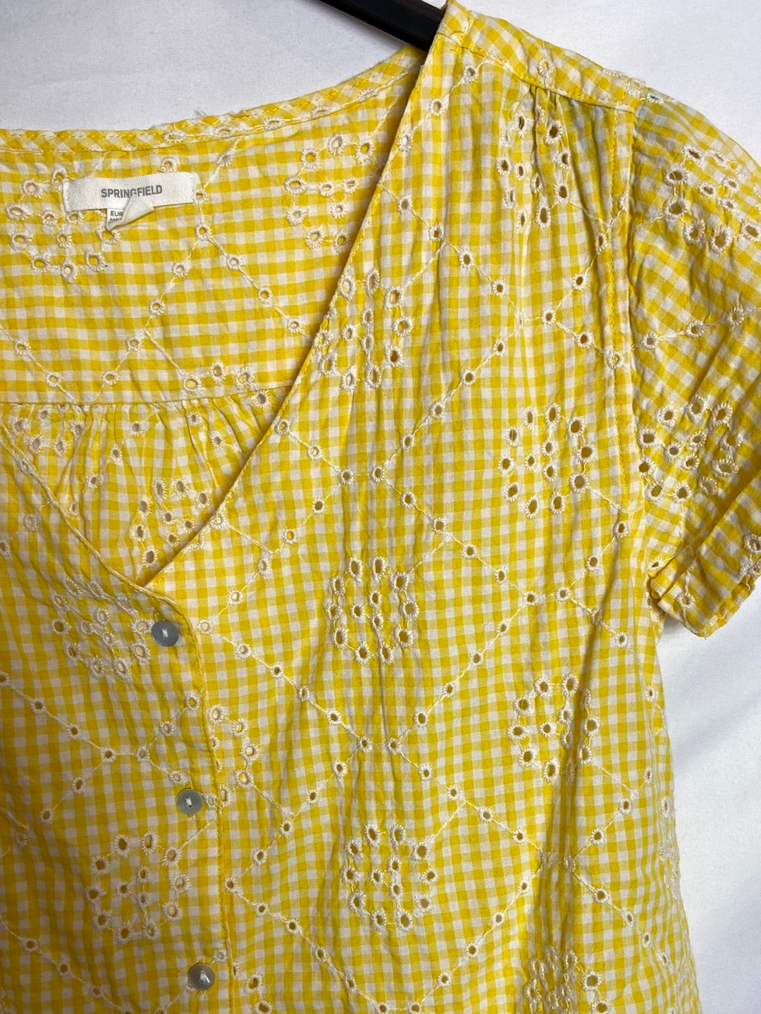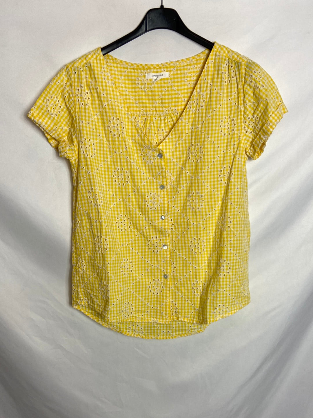 SPRINGFIELD. Top amarillo cuadros troquelado T.36