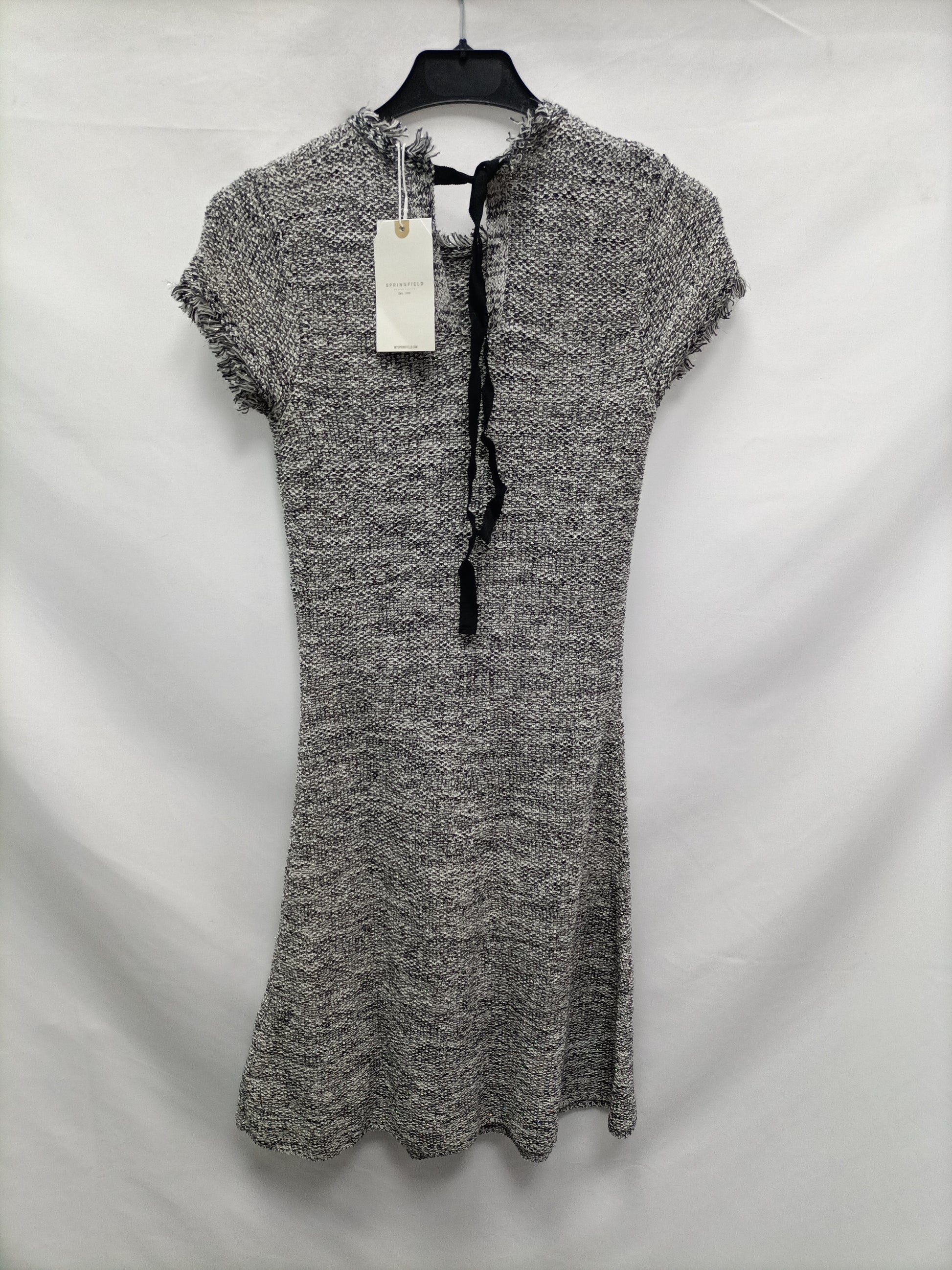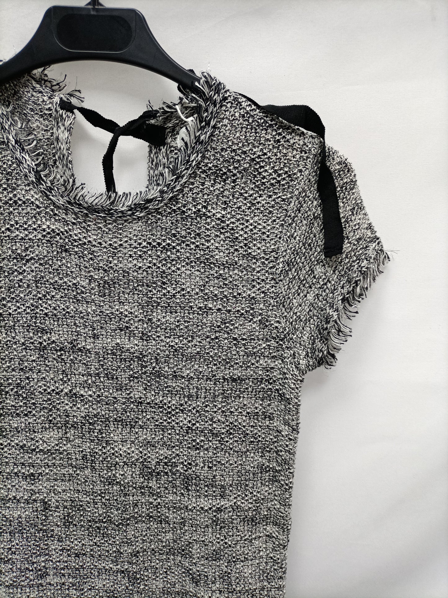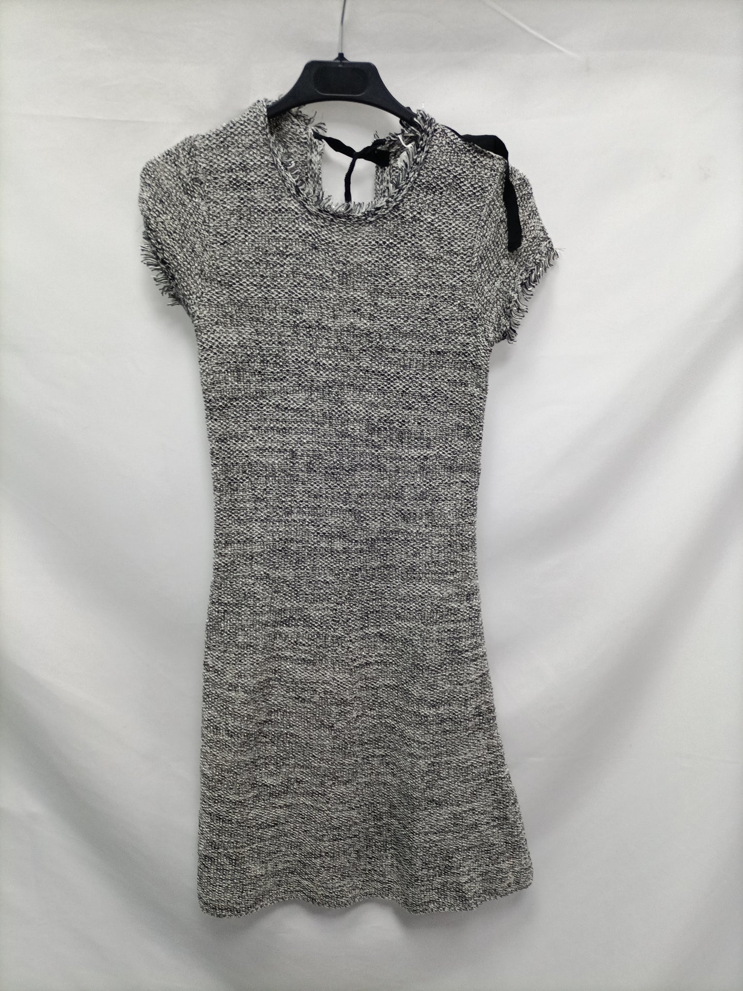 Vestido gris con hilos plateados, ajustado con vuelo. NUEVA CON ETIQUETA