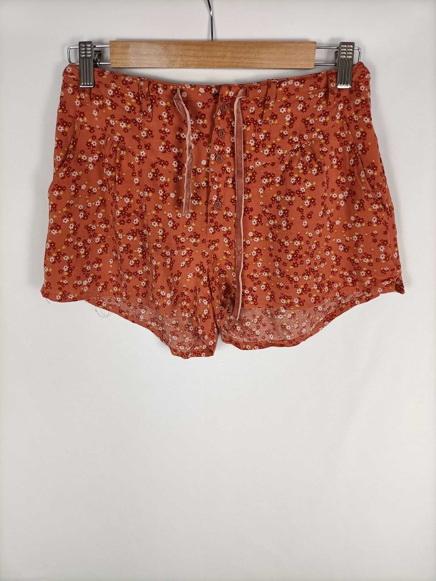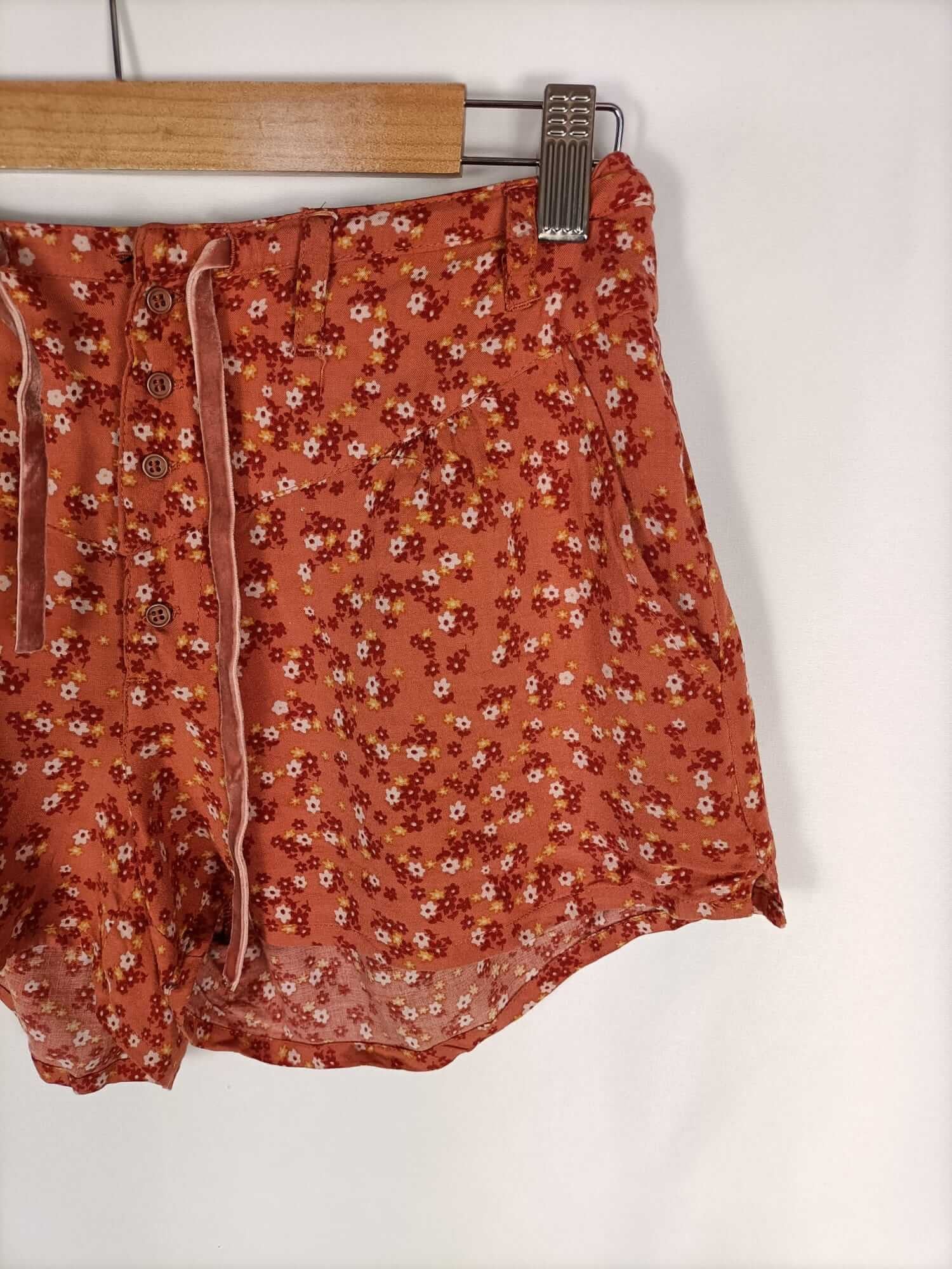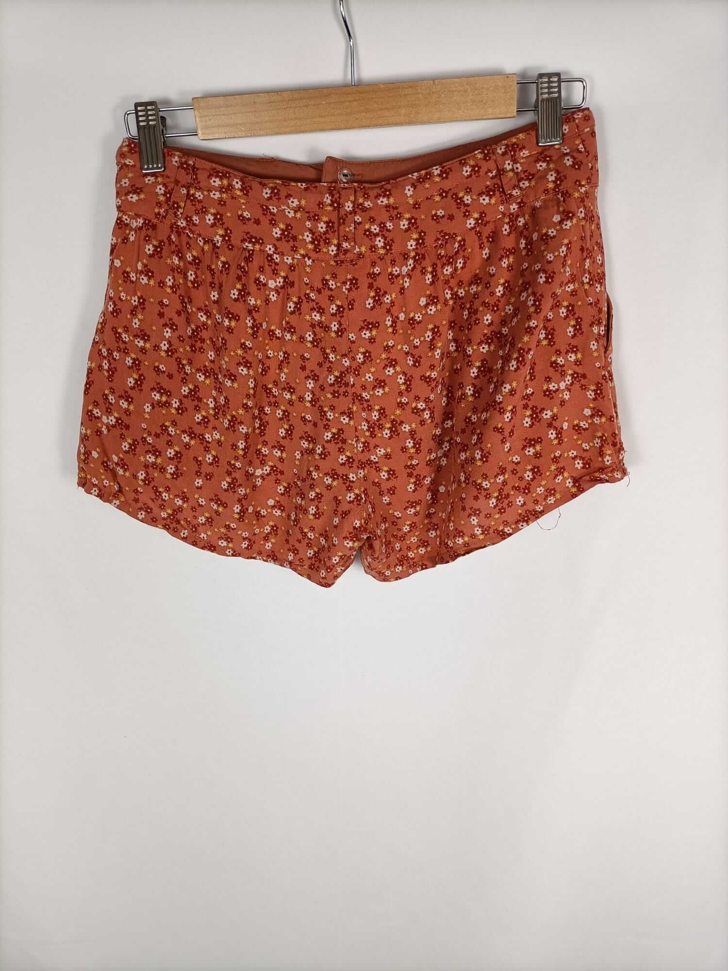 Springfield. 34. Pantalón cortito teja con florecitas. Fluido y fino. No elástico. Cintura 37 cm largo 33 cm