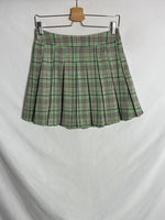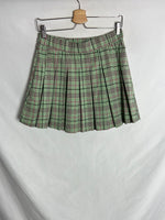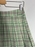 Falda verde tablas con cremallera lateral cuadros rosas